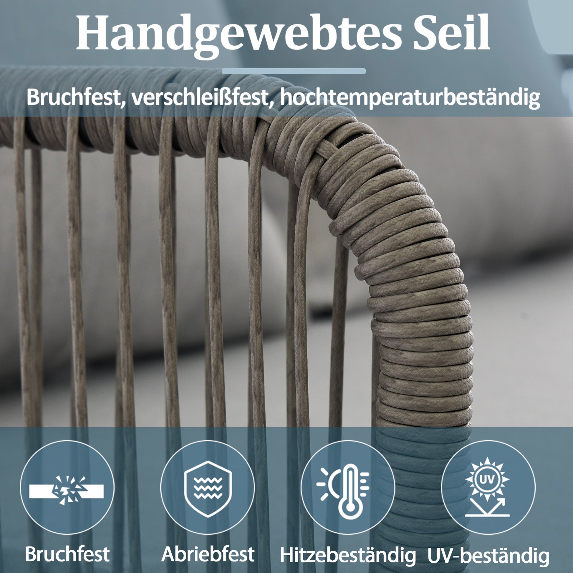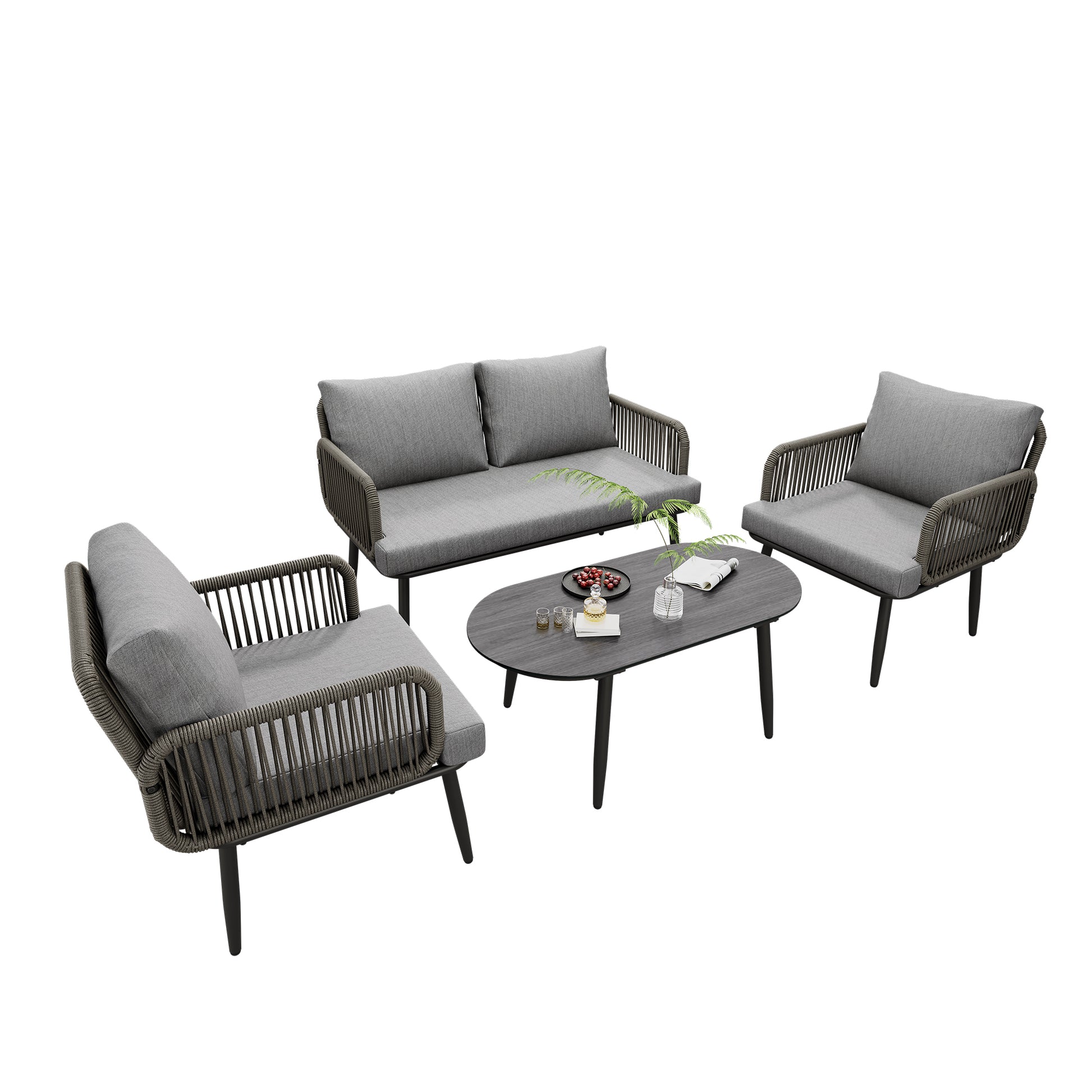 Garden Furniture Set with Sofa, Armchairs, and Coffee Table, Grey Steel and Rope
