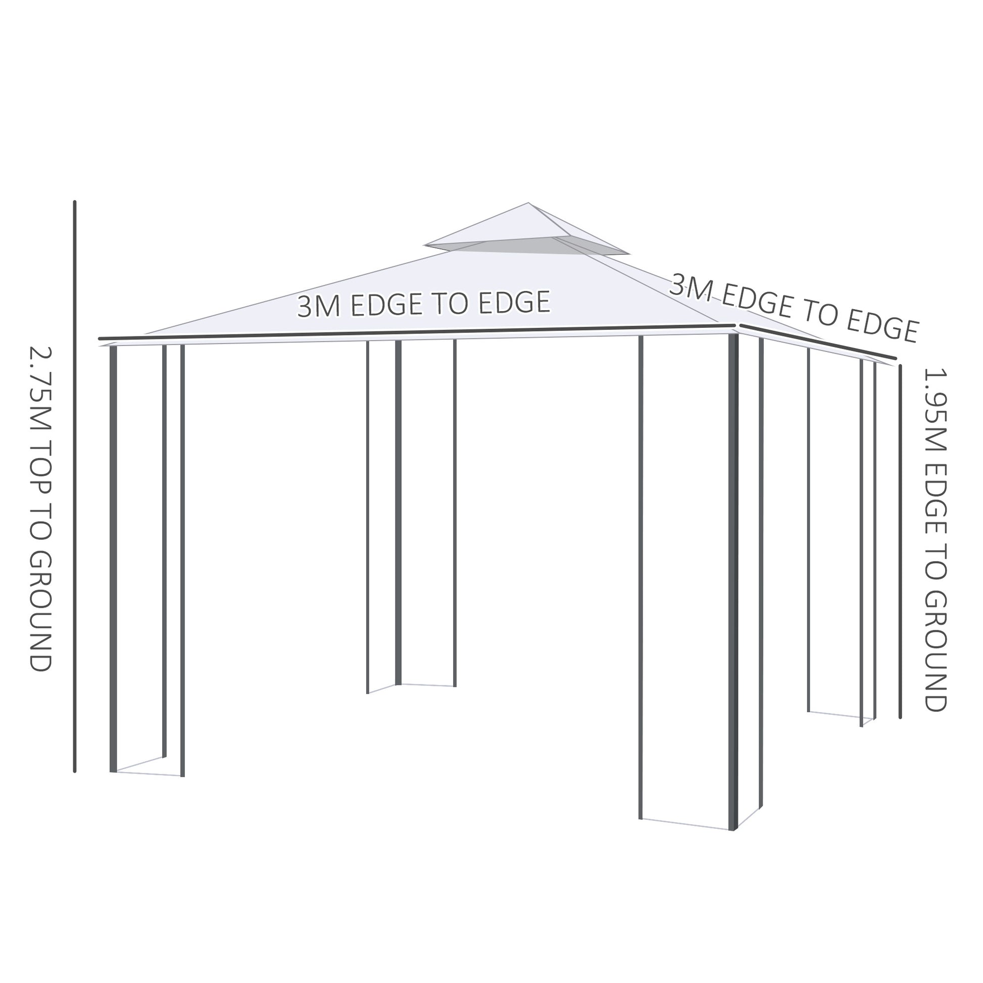 Garden Gazebo 3x3m Double Top Outdoor Canopy with Netting - Cream White