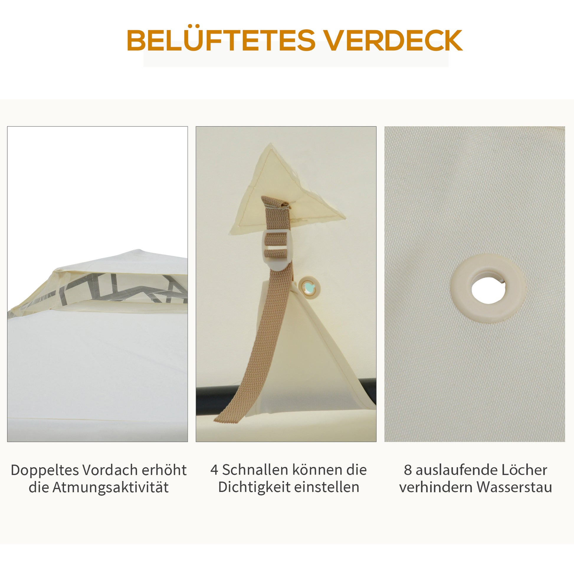 Weather-resistant: The roof, made of 160 g/m² polyester with a PA coating, protects you from harmful UV rays and light rain. The double roof with additional insect net allows for good ventilation while protecting you from insects, wind, and rain.