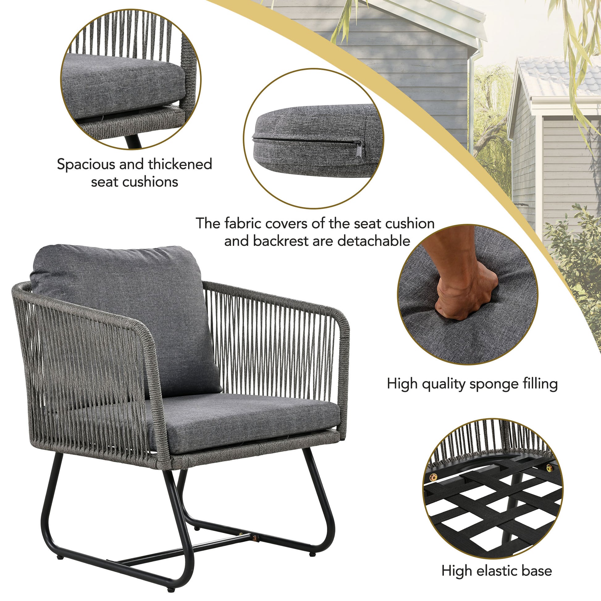 High-Quality Materials: The coffee table surface is made of glass and is easy to clean. The armrests and backrests of the seats are hand-woven from rope. Beautiful and practical: Withstands rain, sunshine, wind, and other outdoor elements.