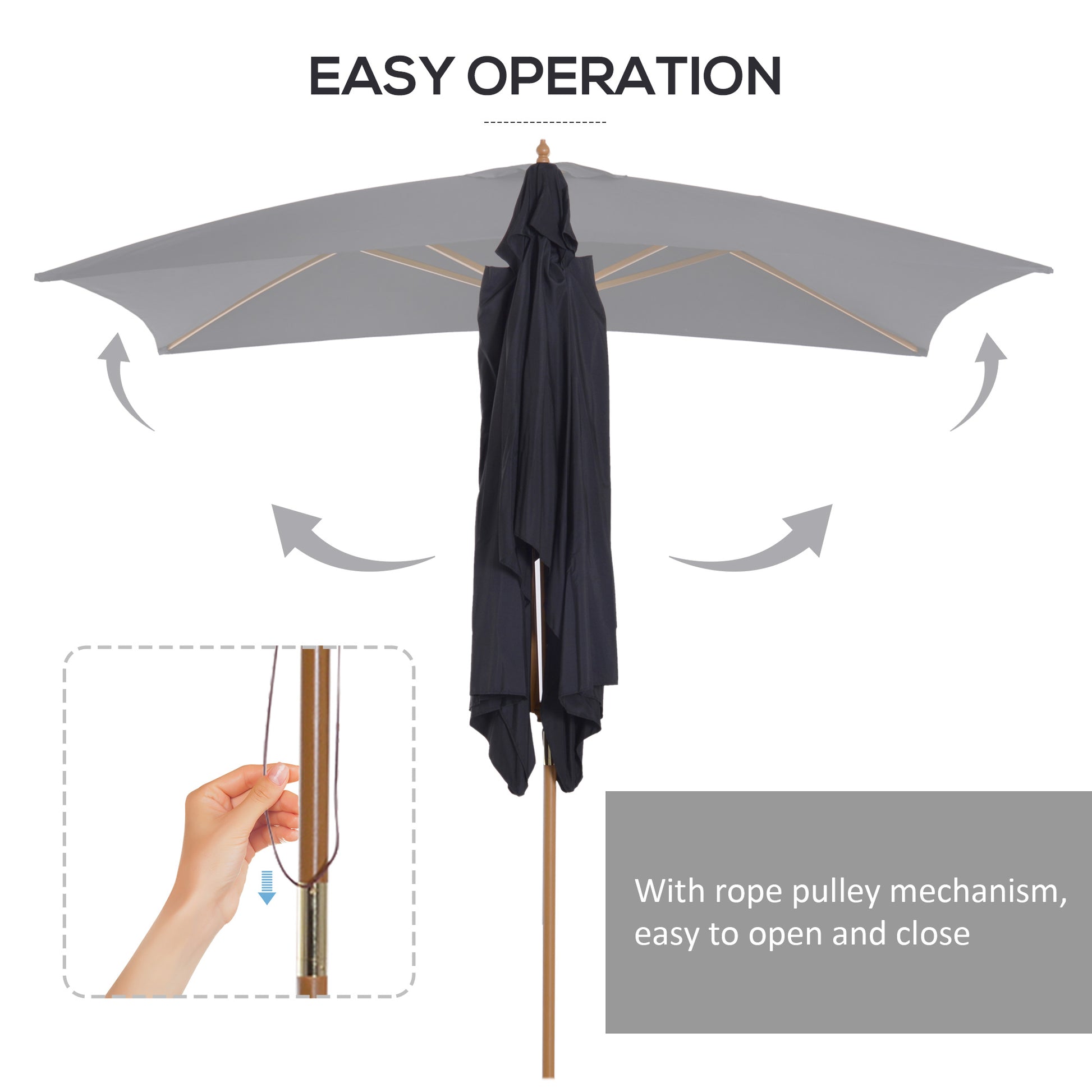 Garden Parasol Umbrella, 2 x 3m Outdoor Shade Canopy, Wooden, Black