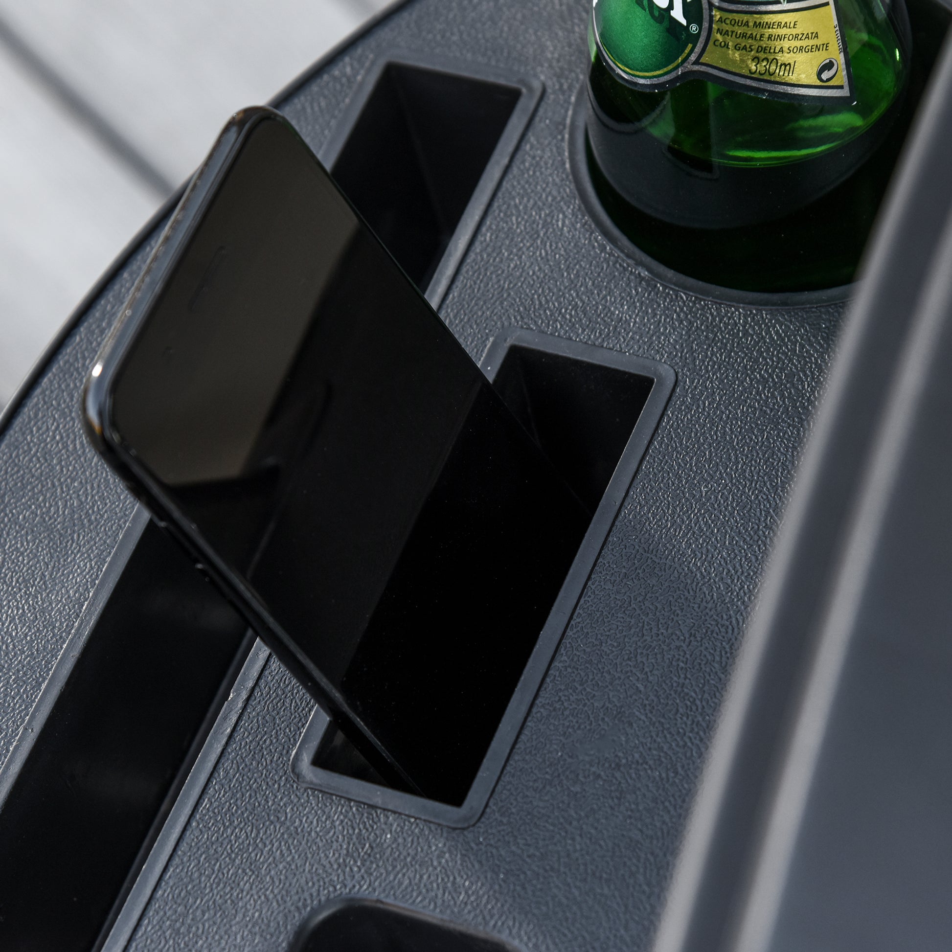 Steel Frame: The steel frame is powder coated for extra strength, making the outdoor rocking chair structure strong. It features an attached side tray for convenience.