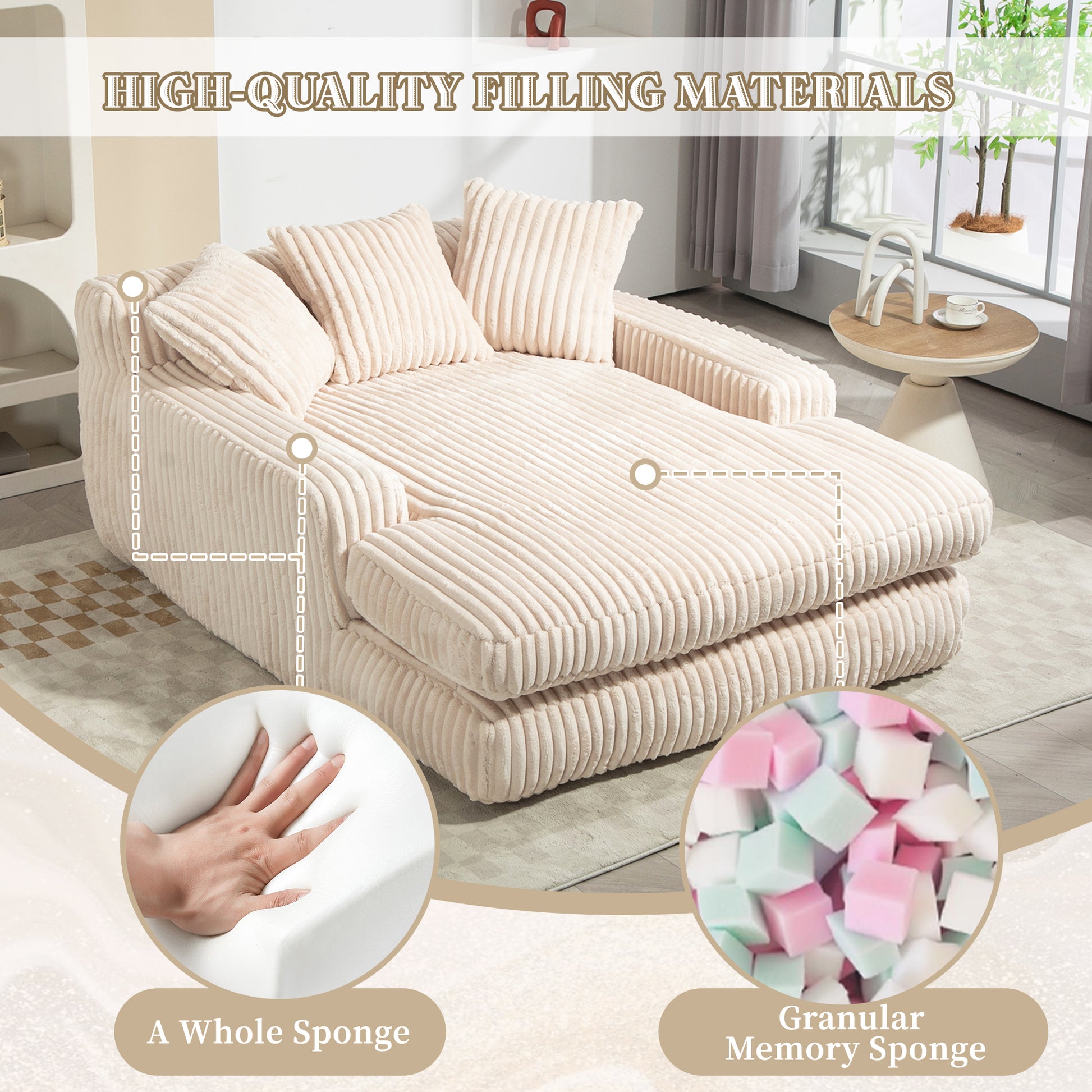 Comfort Upgrade: This oversized lounge chair is made of soft and skin-friendly corduroy fabric, which enhances the comfort of skin contact. It is paired with three large-sized cushions, optimizing the support for leaning and lying down, and complemented by widened armrests, further enhancing the comfort and practicality during use.