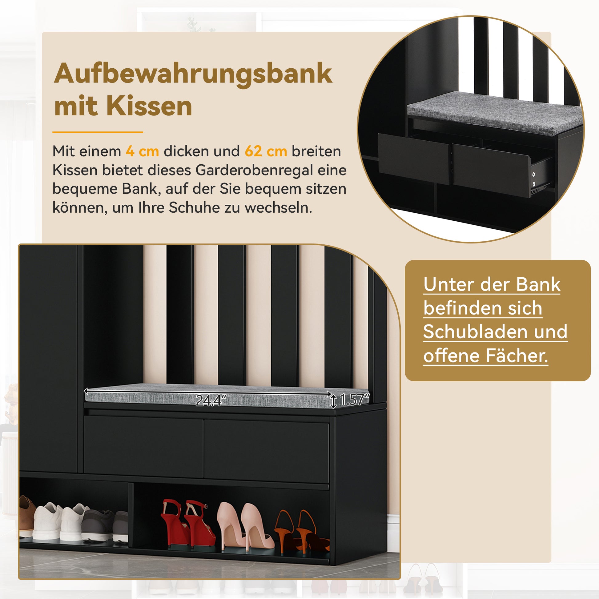 Equipped with a 1.57" thick and 24.4" wide cushion, this entryway tree provides a comfortable bench for you to sit on while changing your shoes. Additionally, drawers and open compartments underneath the bench provide ample storage space for various items.