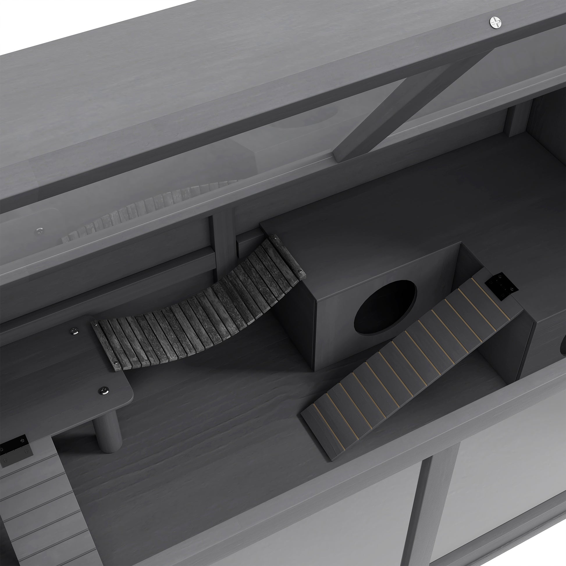 Hamster Cage, 100cm Rodent House with Playhouse & Ladders, Wooden Dark Grey