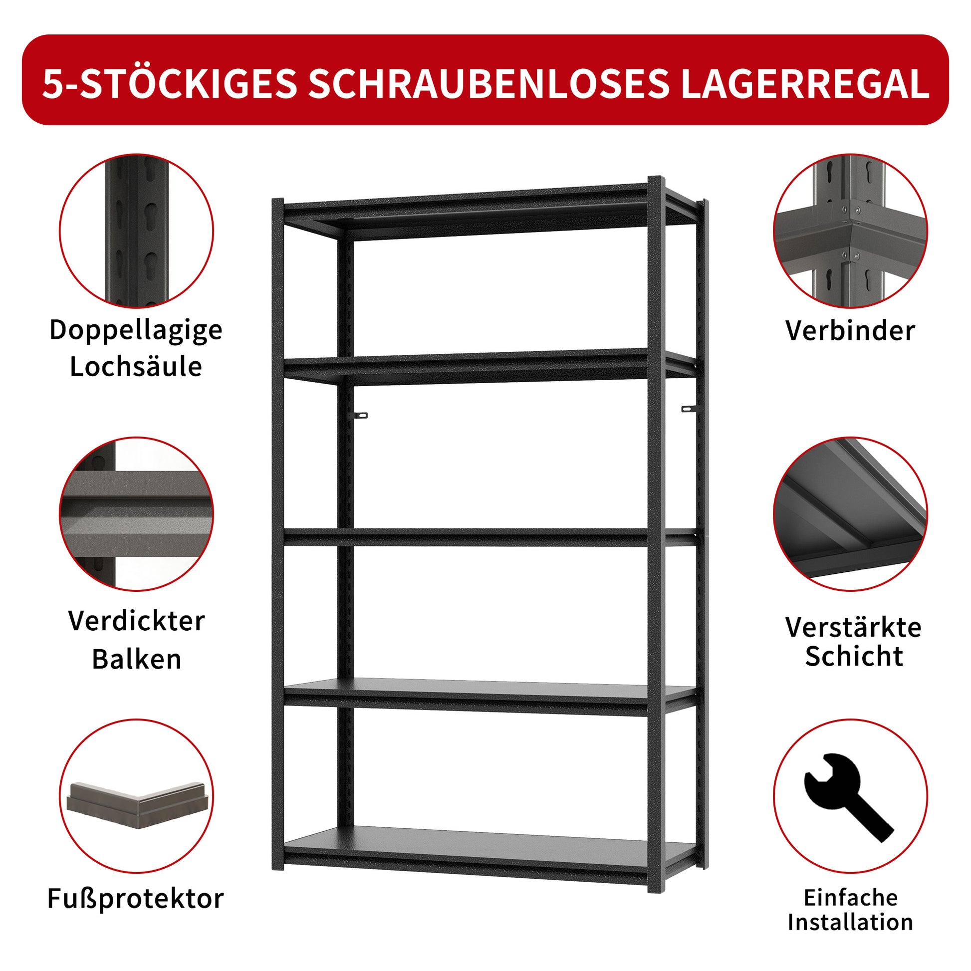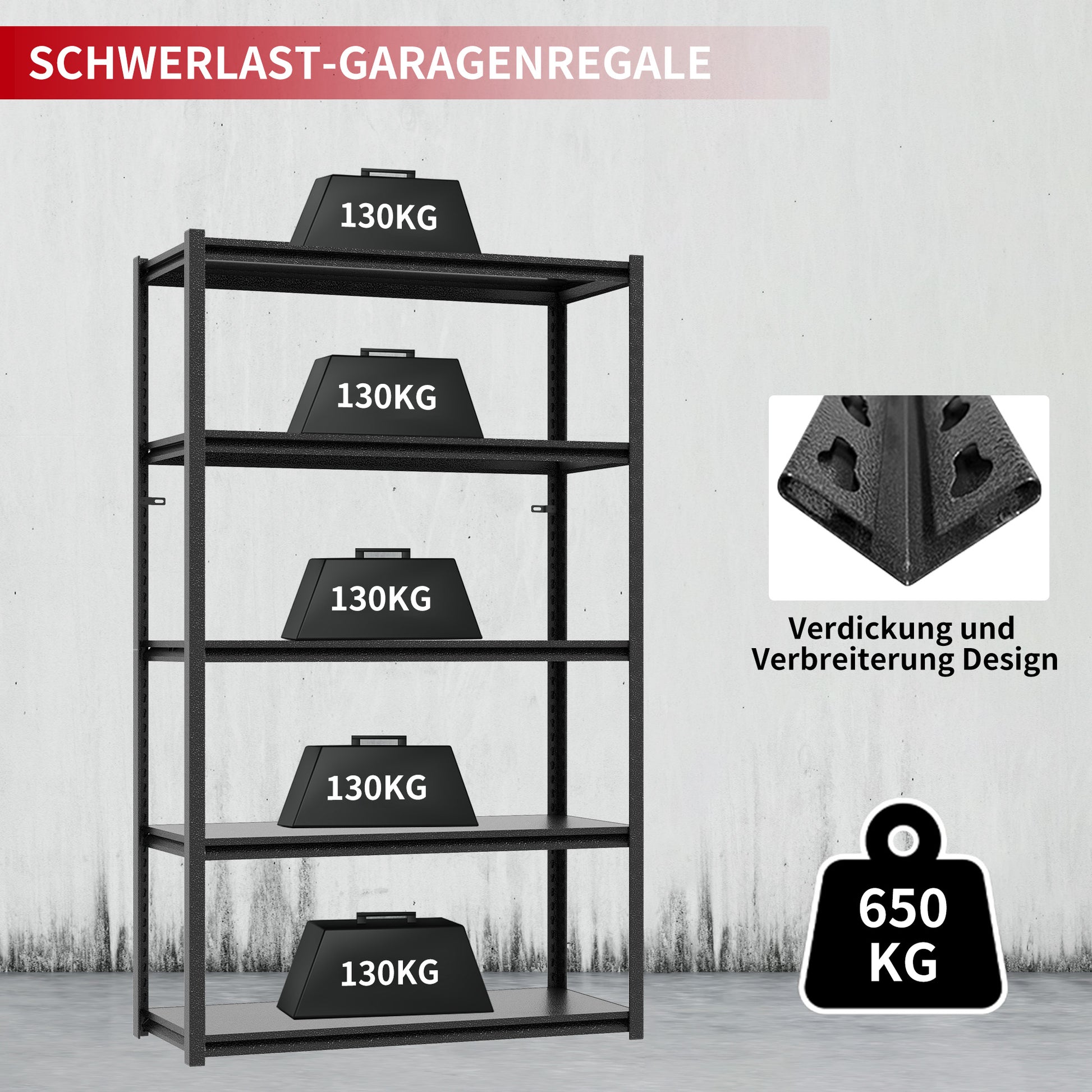 Heavy Duty Shelving Unit, 5 Shelves 650kg Load Capacity Height-Adjustable, Metal Black