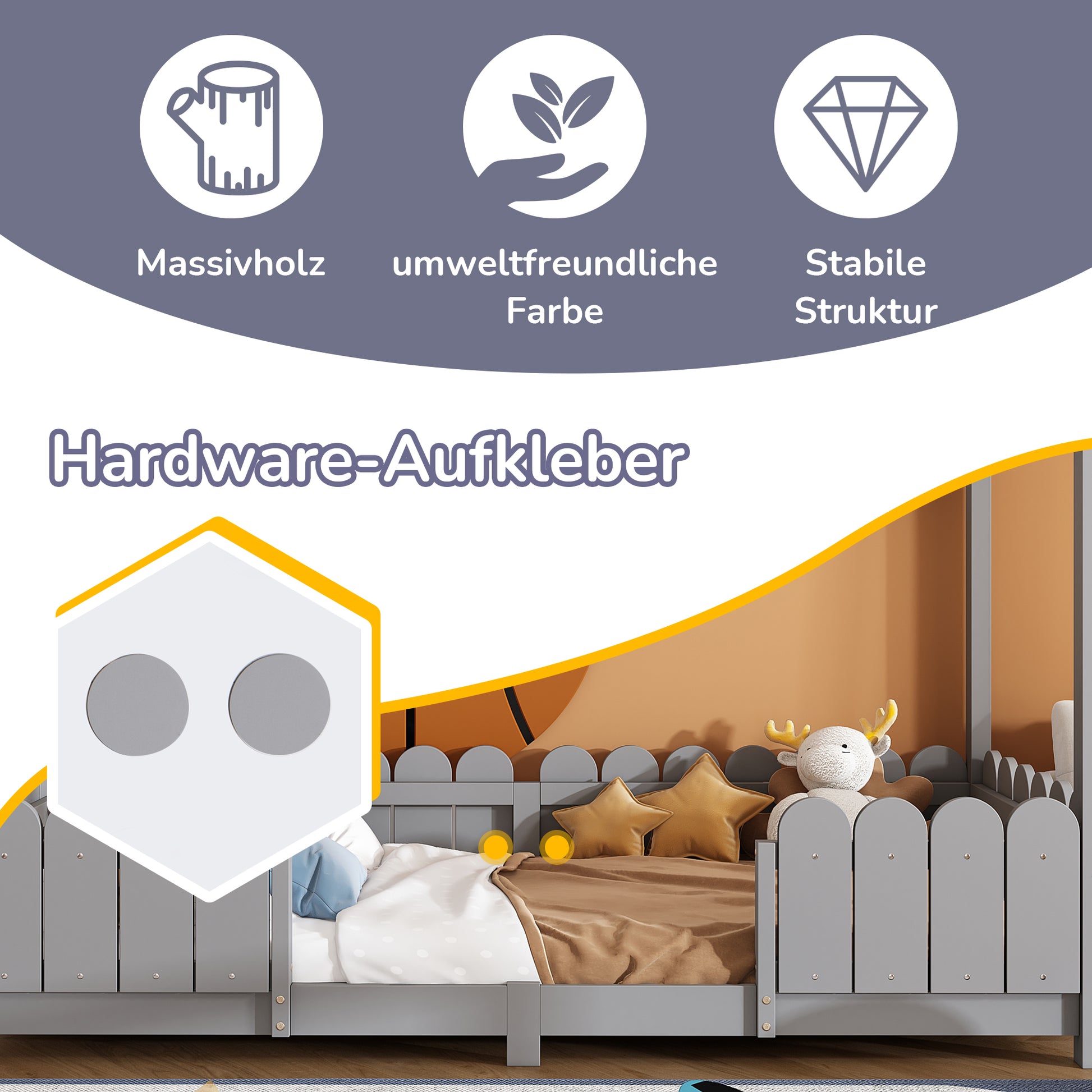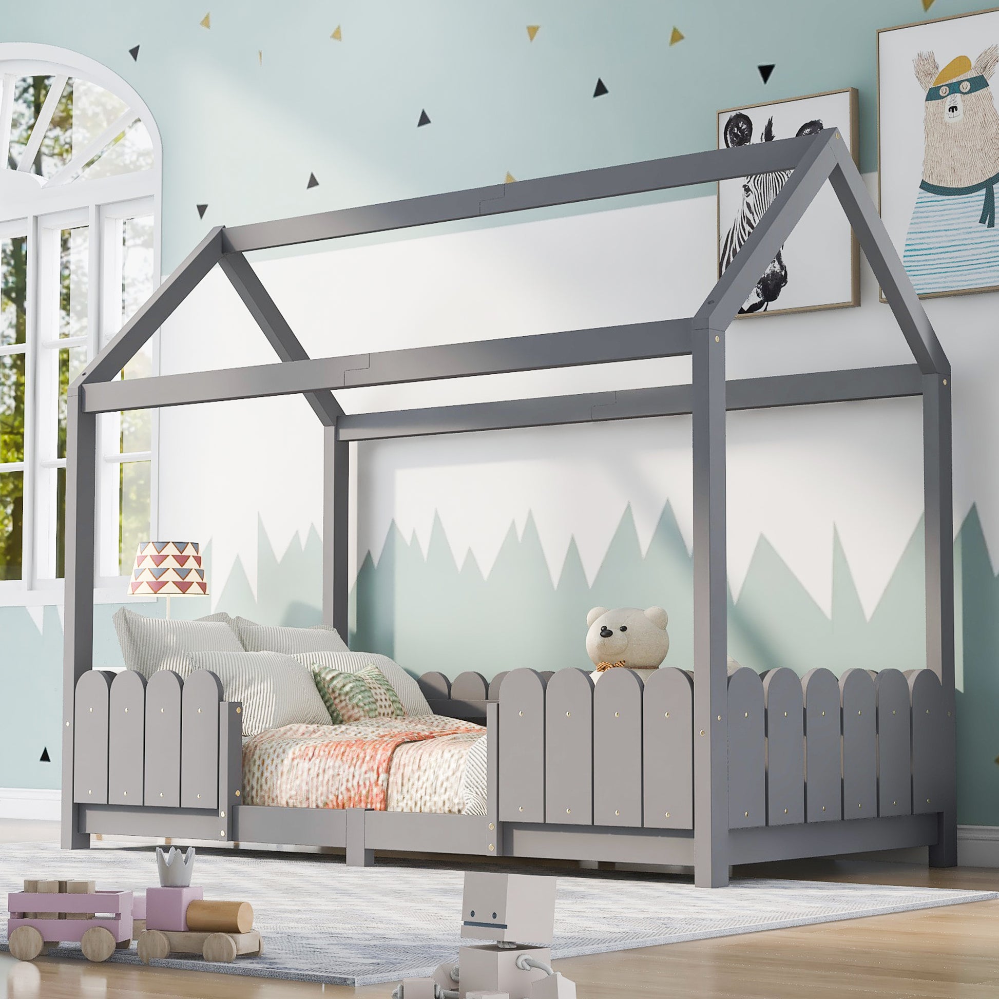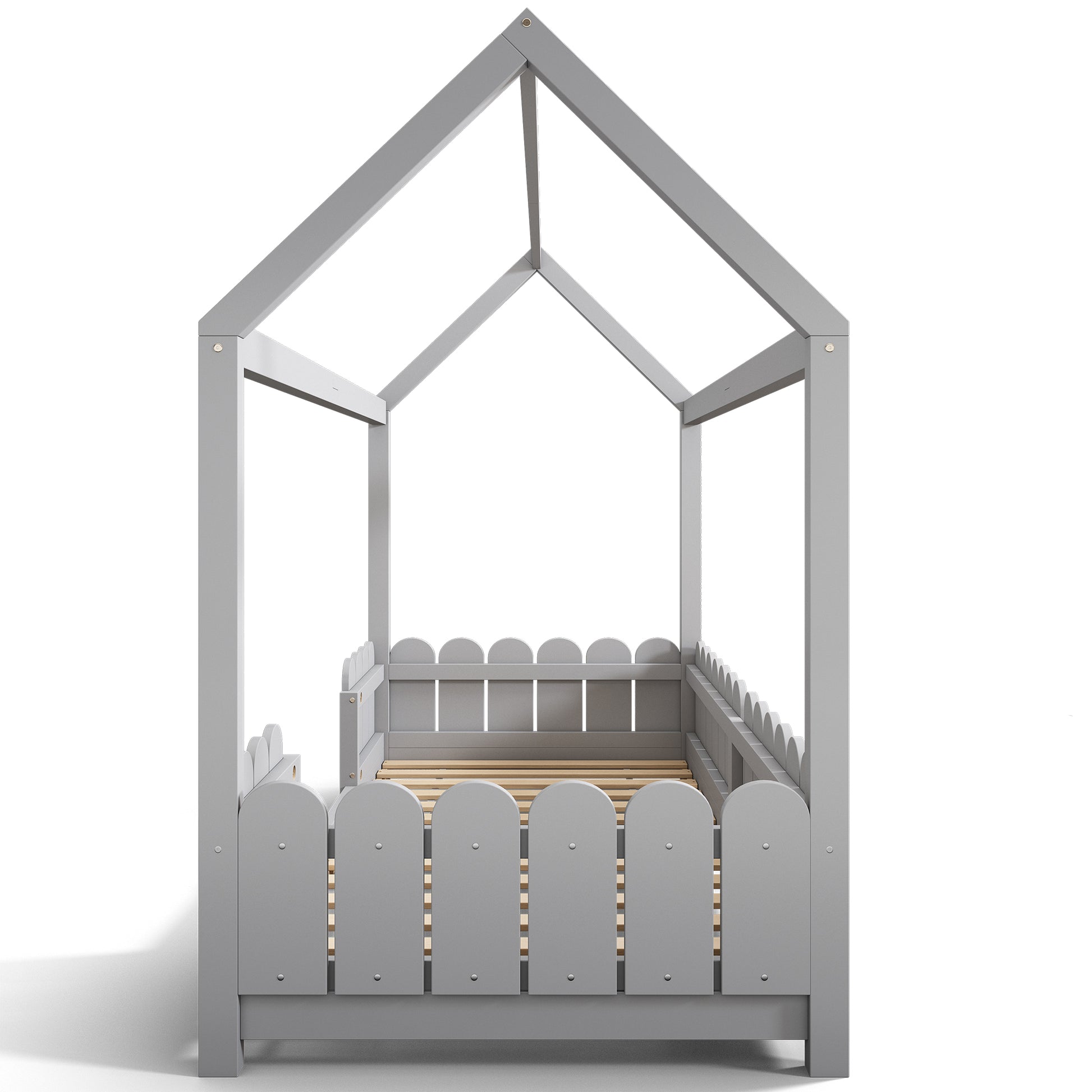 House Bed 90x200cm Versatile Children's Bed with Fall Protection and Slatted Frame, Grey