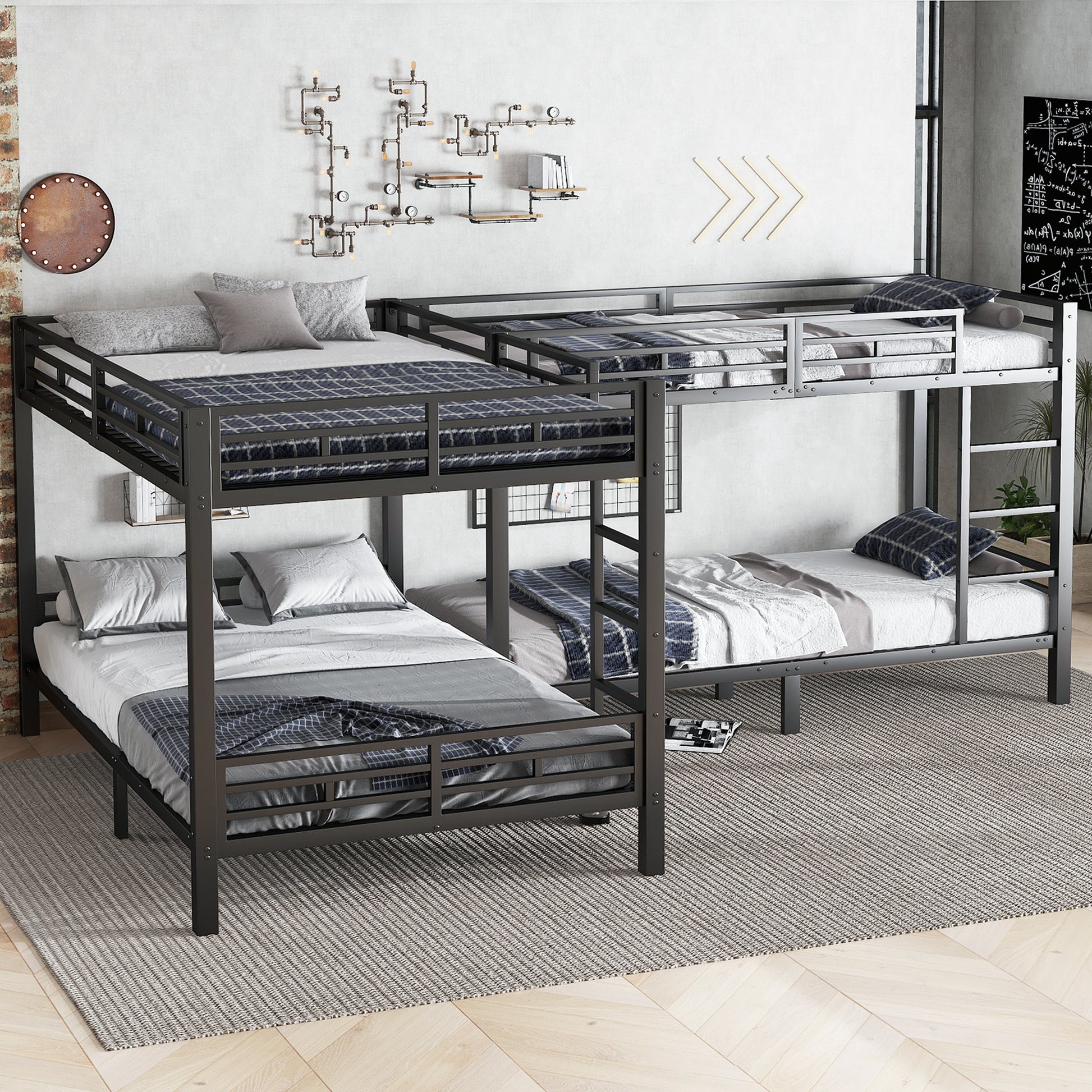 The left bunk bed is the size of a double bed.