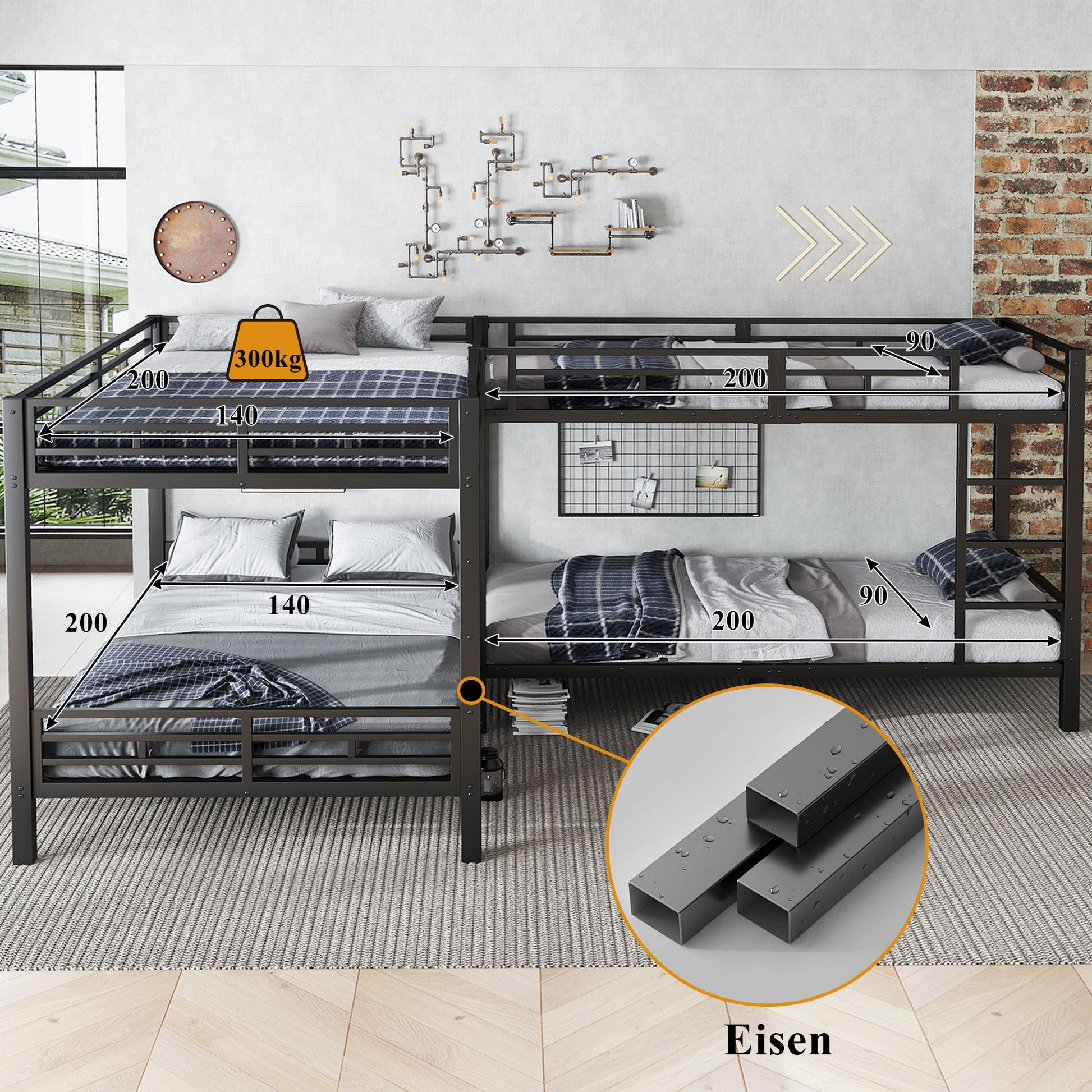 Iron Bunk Bed Multi-Size 90x200cm & 140x200cm Black
