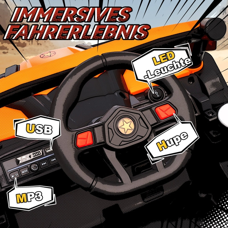 Kids Electric Ride-On Car with Remote Control, LED Lights and USB, Orange