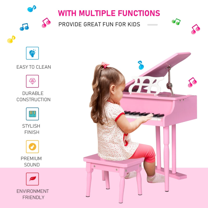 This learn-to-play children's grand piano features 30 great-sounding keys that can cultivate a child's interest in music. It is perfect for little musicians in training.