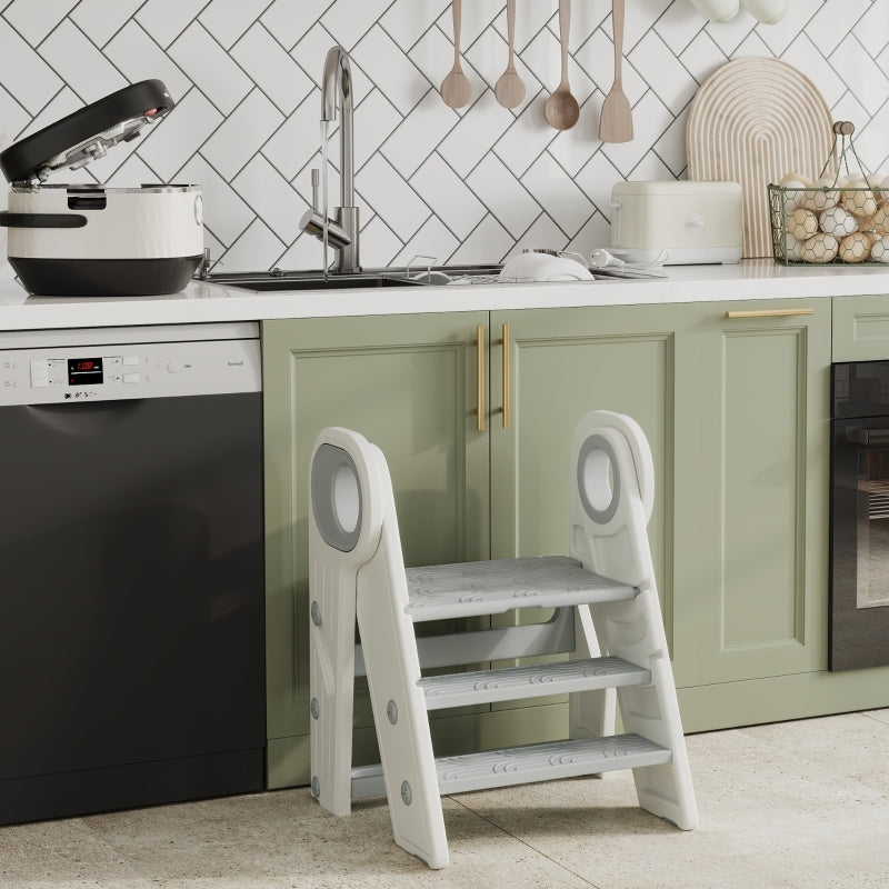 This multifunctional stool can be used in bathrooms, kitchens, and other spaces to give children extra independence.