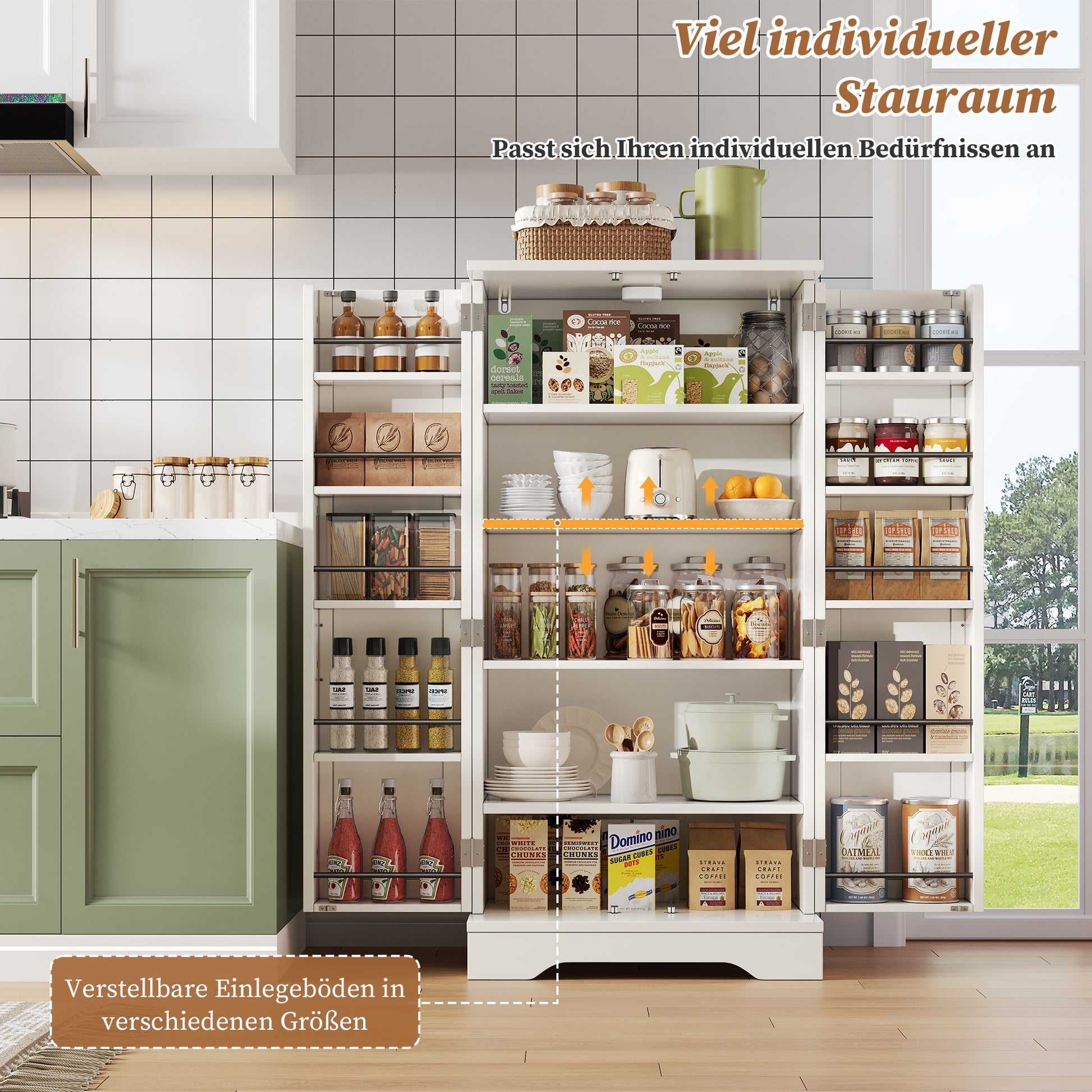 Kitchen Cabinet with LED Sensor Light and Adjustable Shelves, White