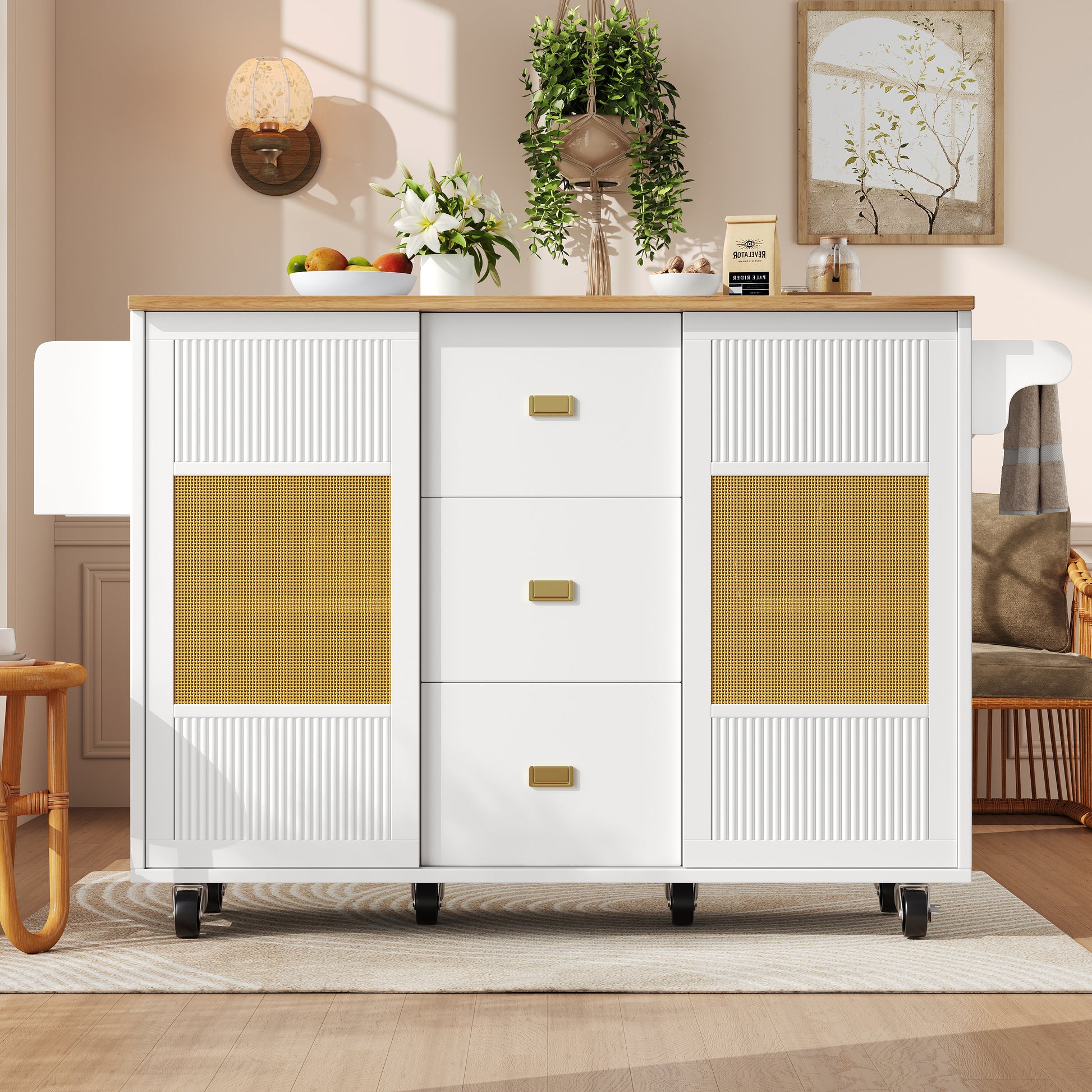 Kitchen Island Extendable with Wheels, Adjustable Shelves & Storage - White