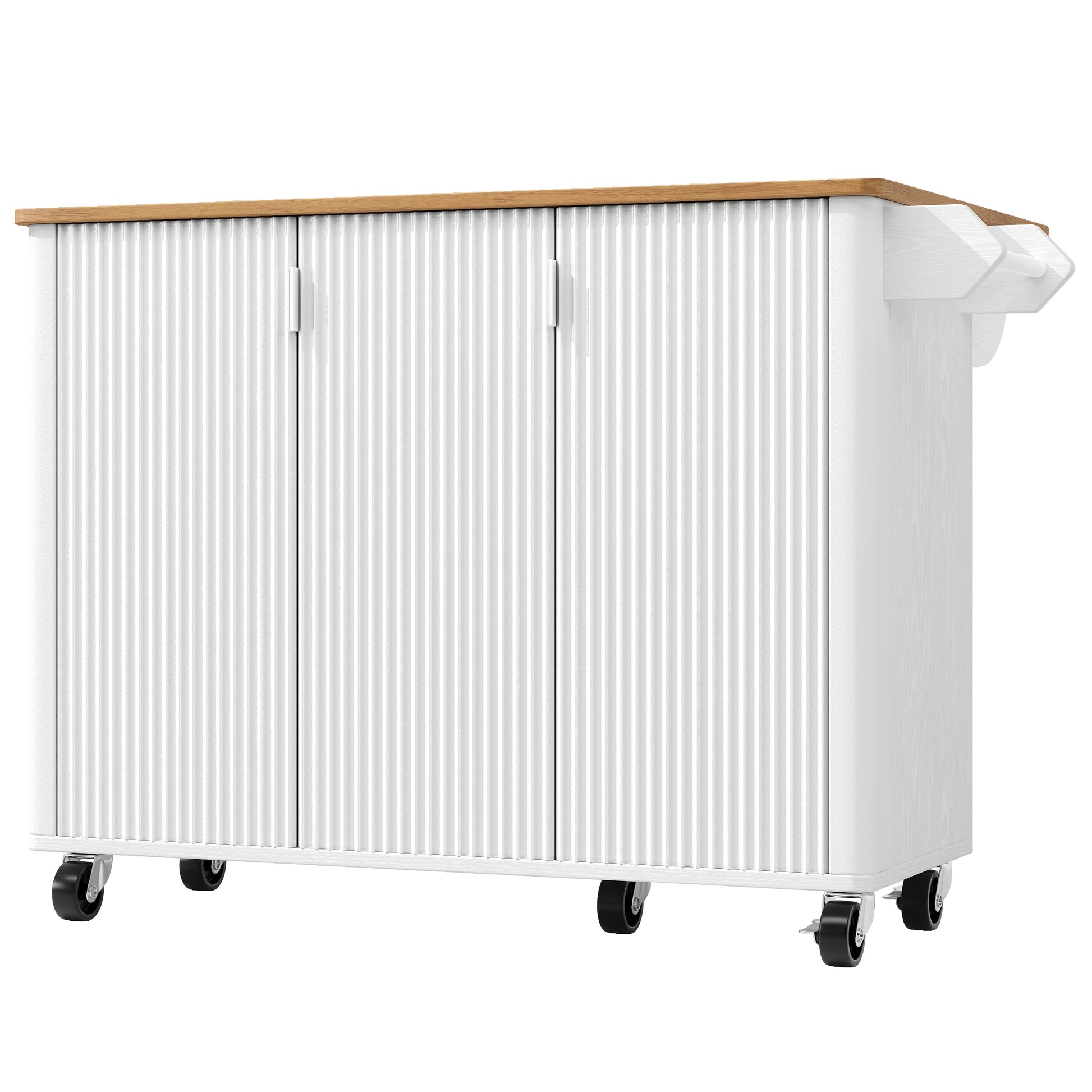 Kitchen Island Trolley Extendable on Wheels Buffet Storage Adjustable Dividers 3 Doors White/Black