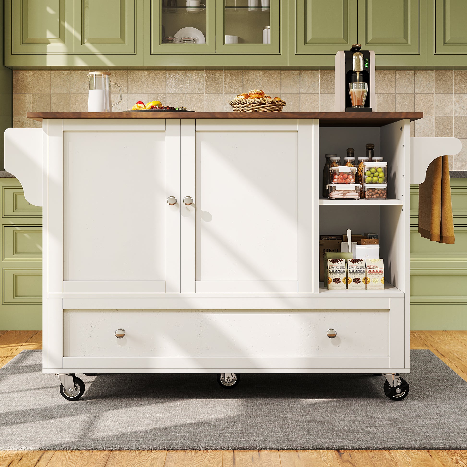 Kitchen Trolley, Removable Dining with Open Storage & Towel Rail, White Wood Grain