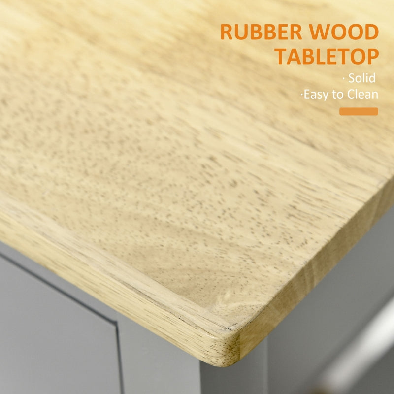 Kitchen Trolley Utility Cart with Worktop, Towel Rack, Storage Shelves & Drawer, Grey