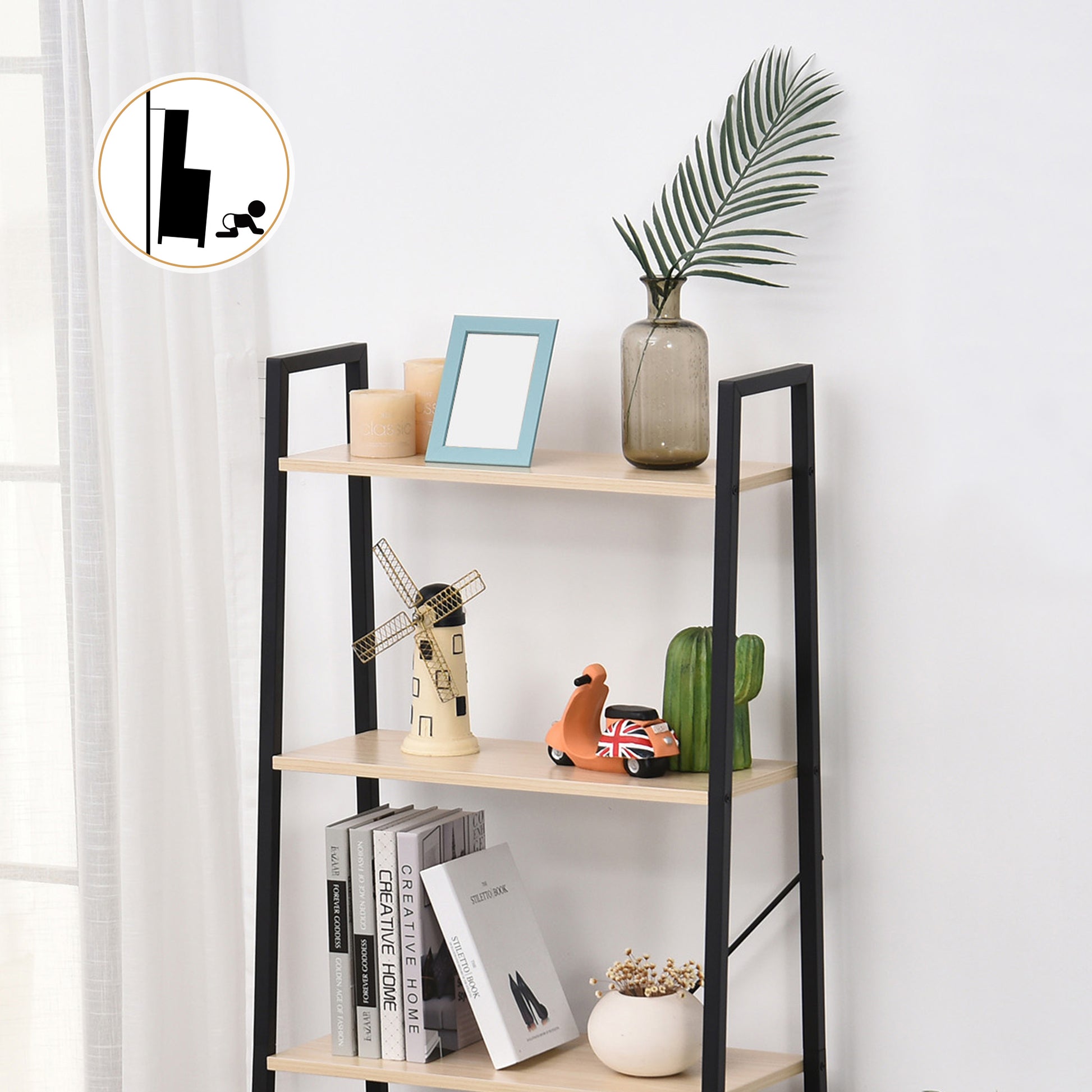 Ladder Shelf Bookshelf 4-Tier Industrial Storage Rack, Oak and Black