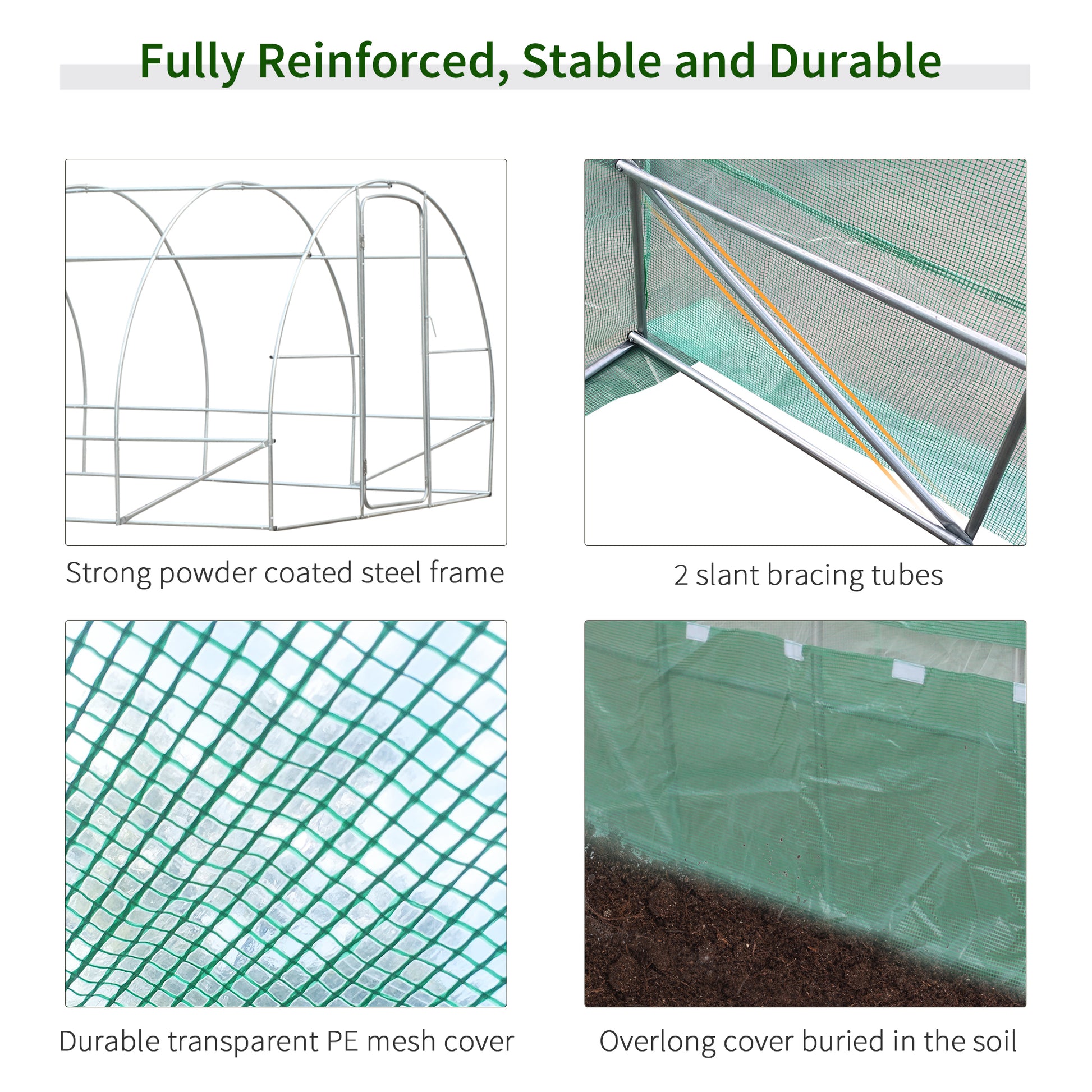 Large Polytunnel Walk In Greenhouse with Metal Hinged Door, Galvanised Steel Frame, Green