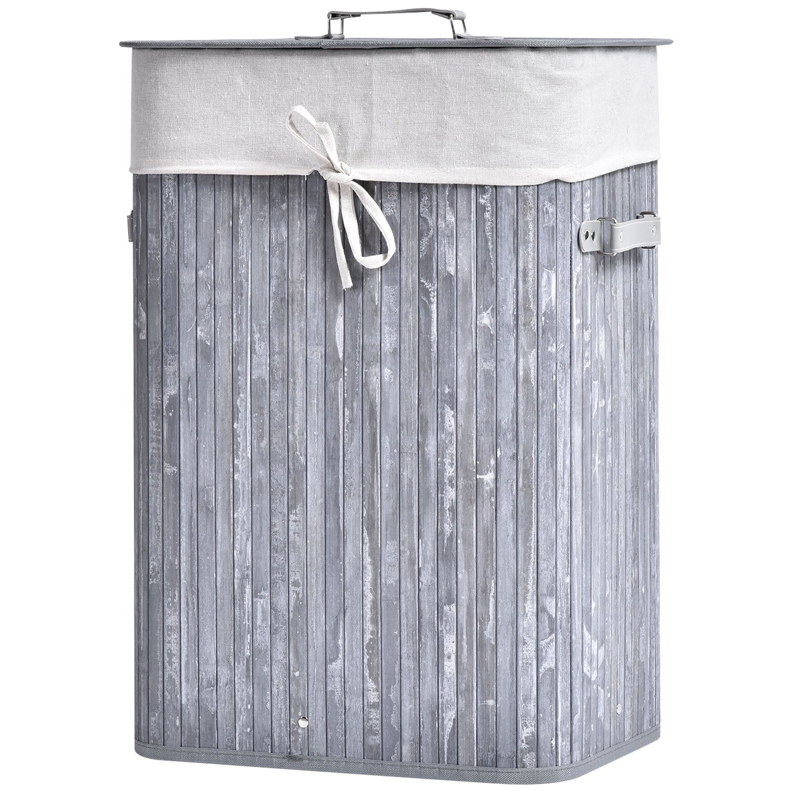 Laundry Basket 72L Foldable with Lid, Bamboo, Grey