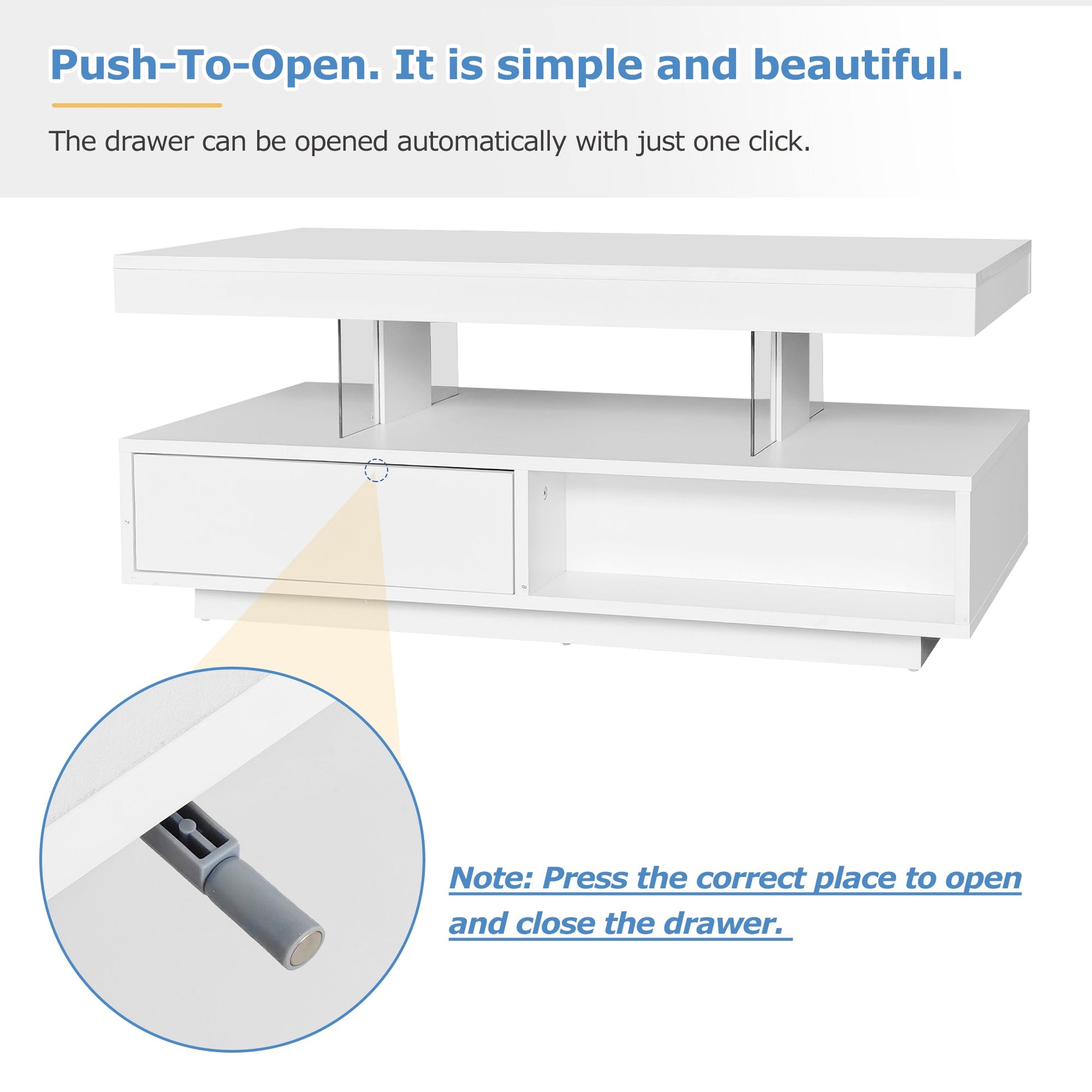 Led Coffee Table with 2 Drawer Storage, High Gloss with 16-Color Led Lights, White