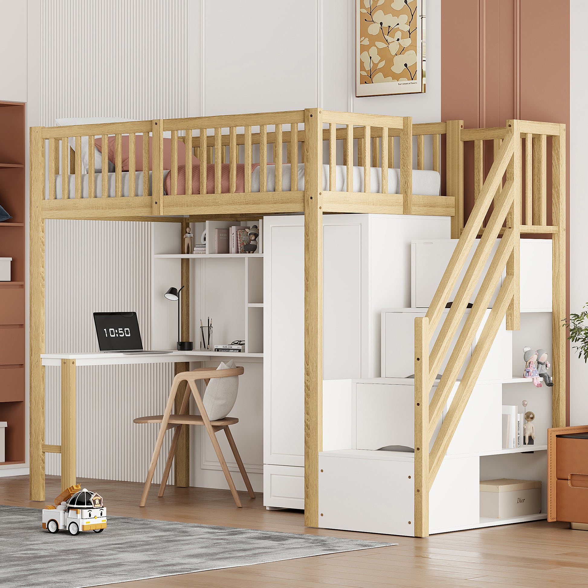 Loft Bed, 90x200 Wardrobe, Shelf, Table, Storage Stairs, Wooden