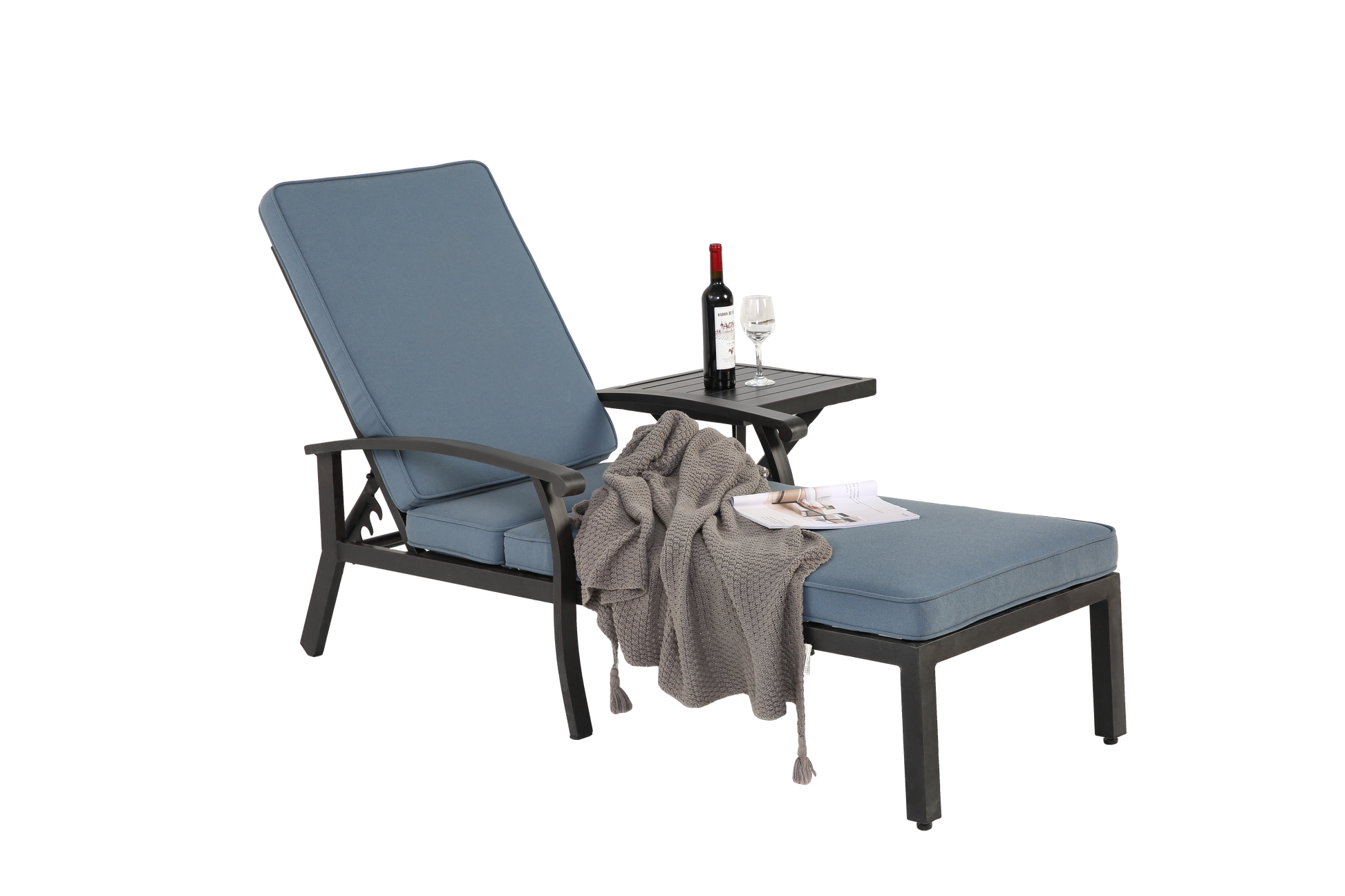 Lounge Patio Chair, Adjustable Reclining Rustproof Aluminum Poolside Chaise, Blue