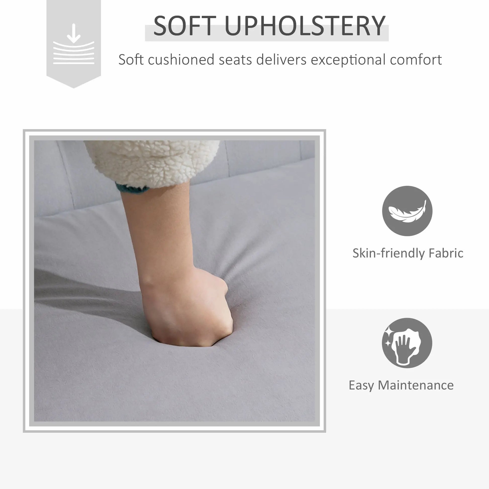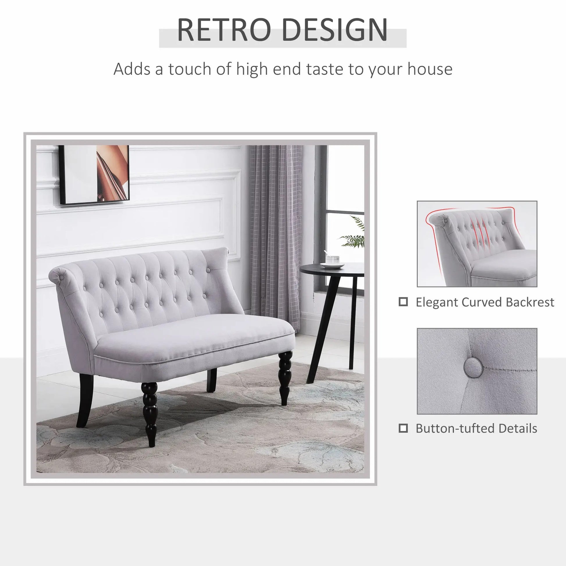 Loveseat, Compact 2 Seater Button Tufted with Carved Legs, Wood Frame, Grey