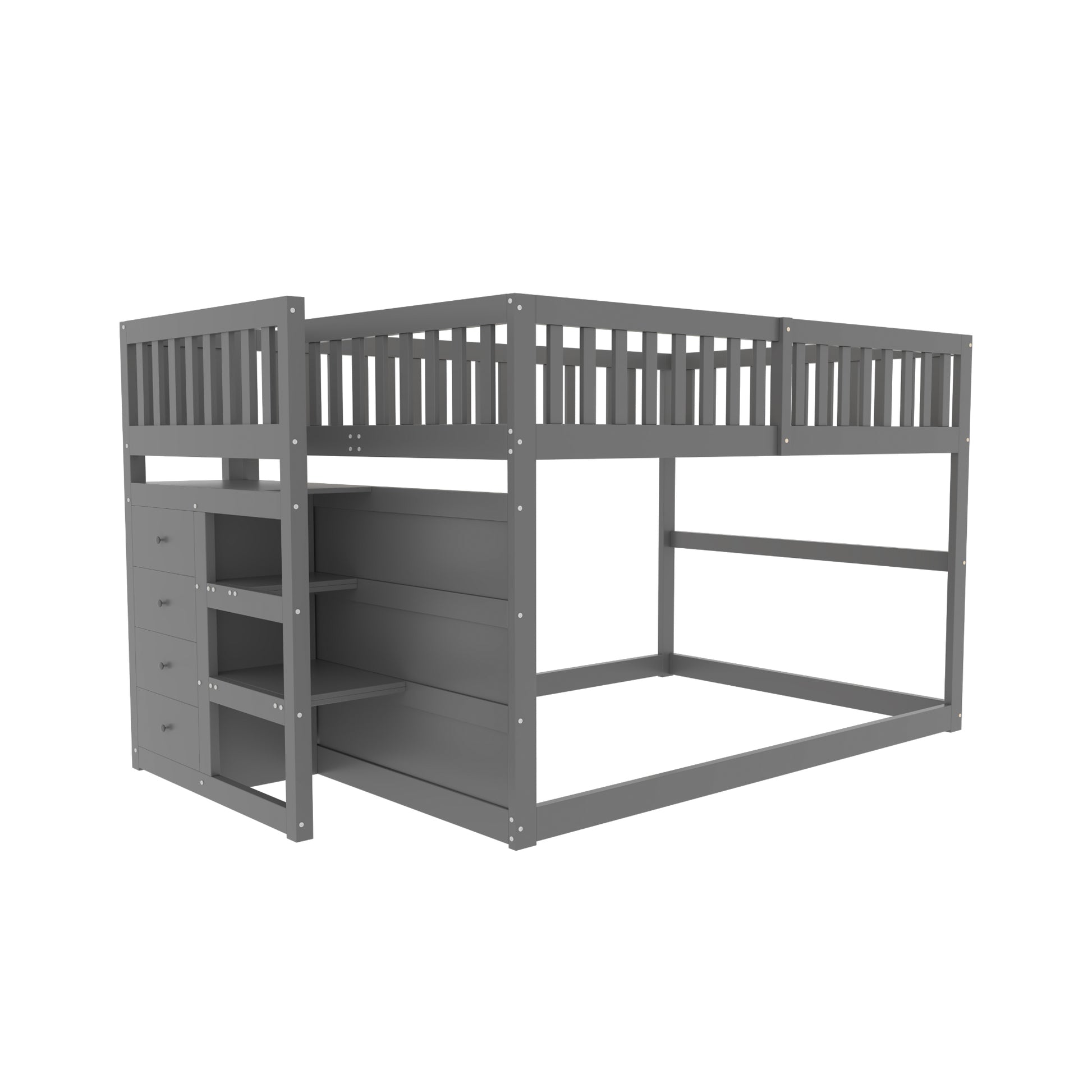 Low Bunk Bed, 140x200cm Safety with Storage, Wooden, Grey