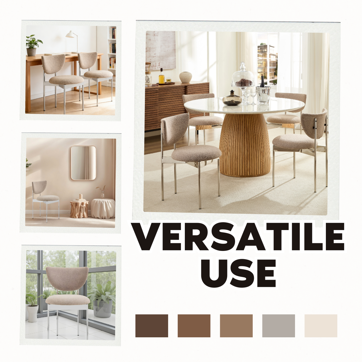 Lunar Dining Chair, Modern Metal Frame Set of 2, Beige/Khaki