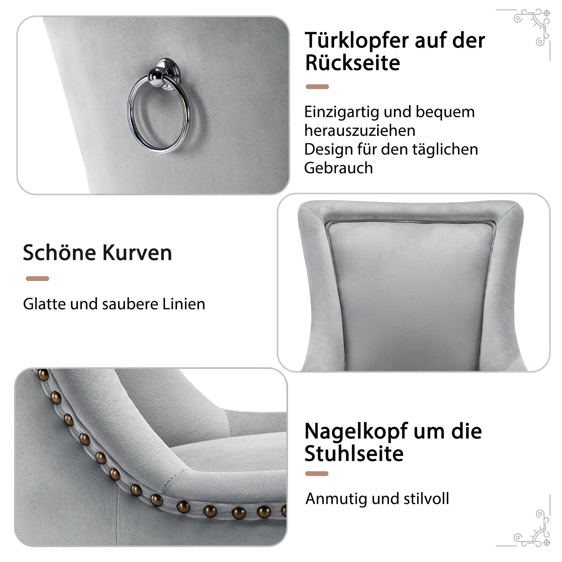Luxurious Dining Chair (set of 2) , Upholstered with Nailhead Trim, Solid Wood Legs, Velvet, Grey