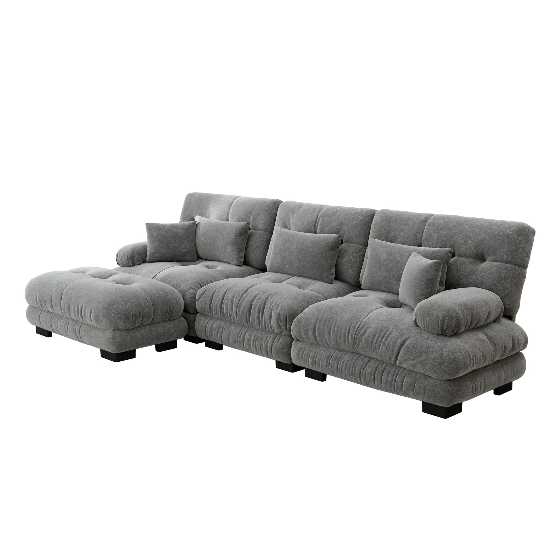 Luxury Modular Corner Sofa - Oversized L-shaped Cloud Couch with Ottoman, Chenille Grey