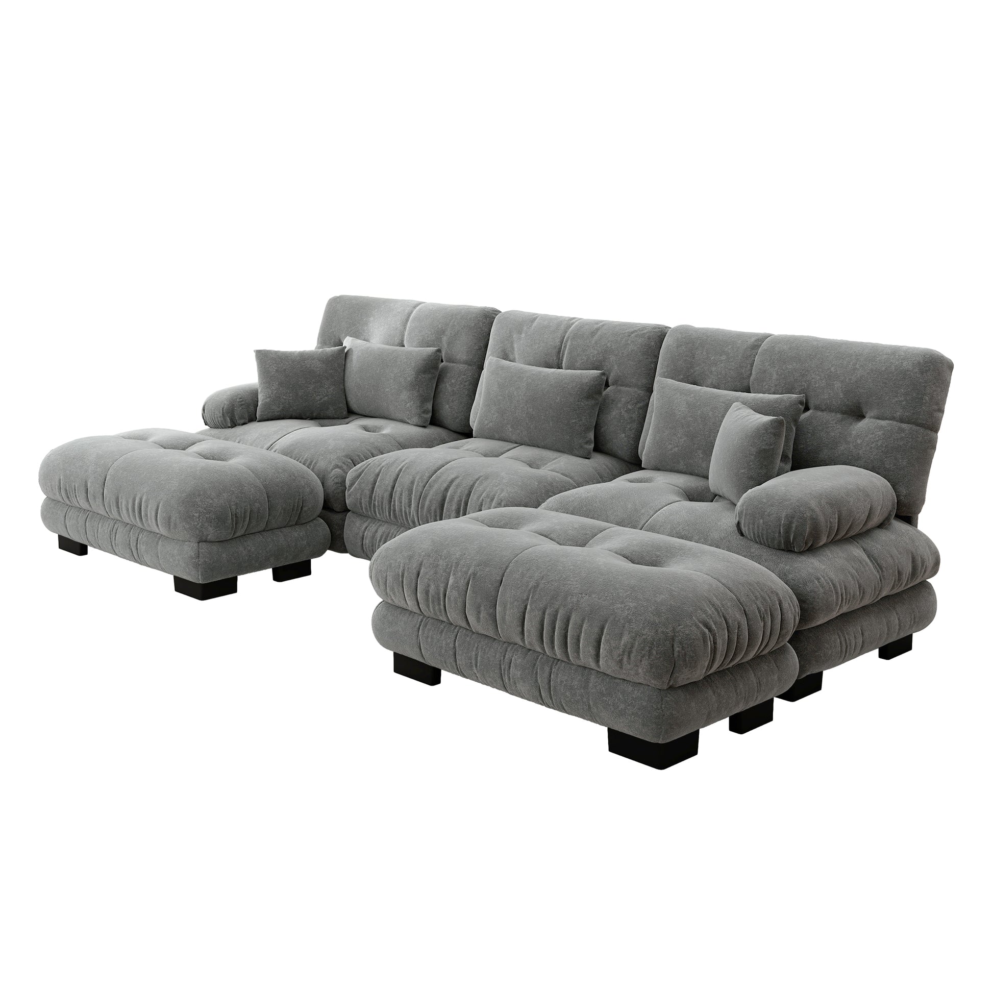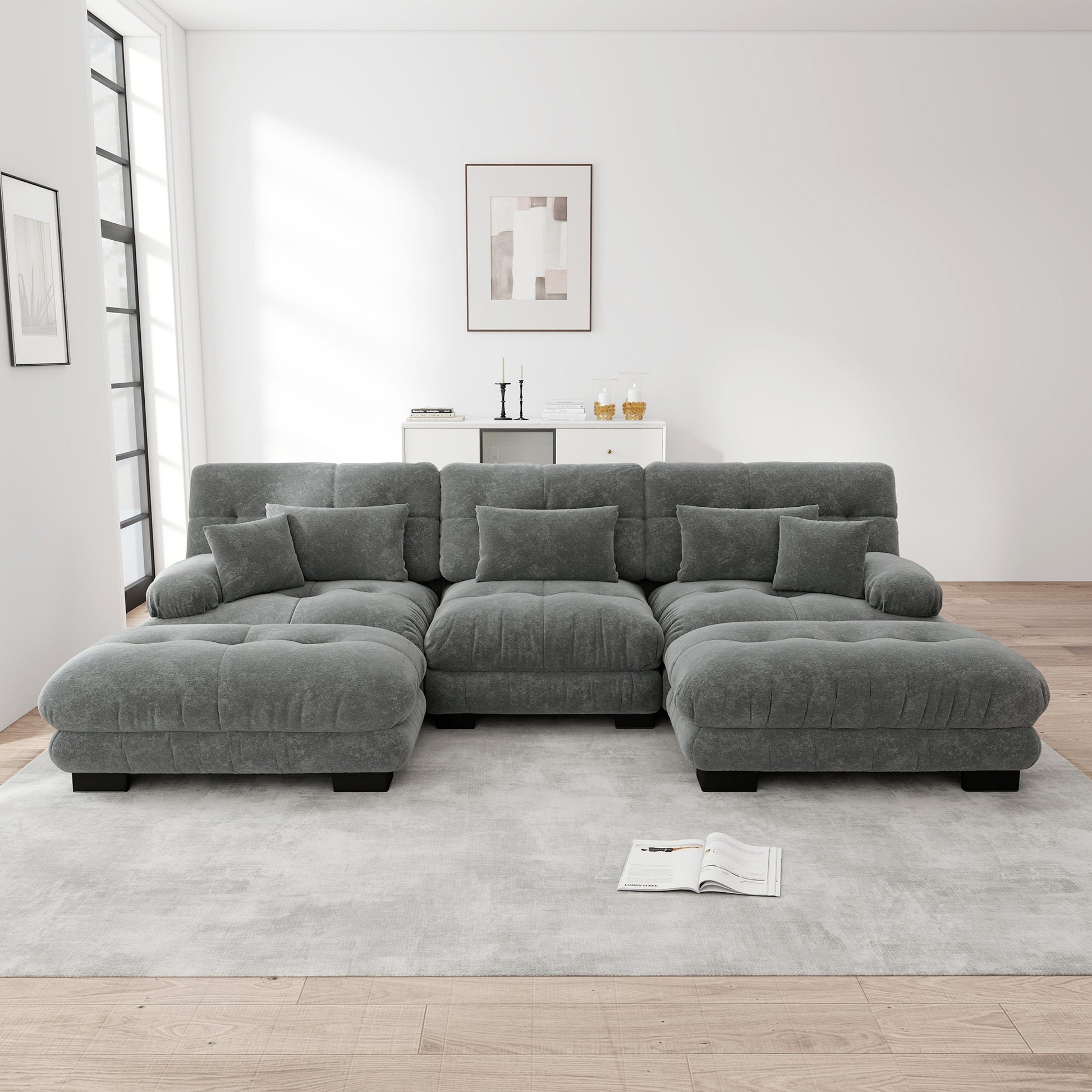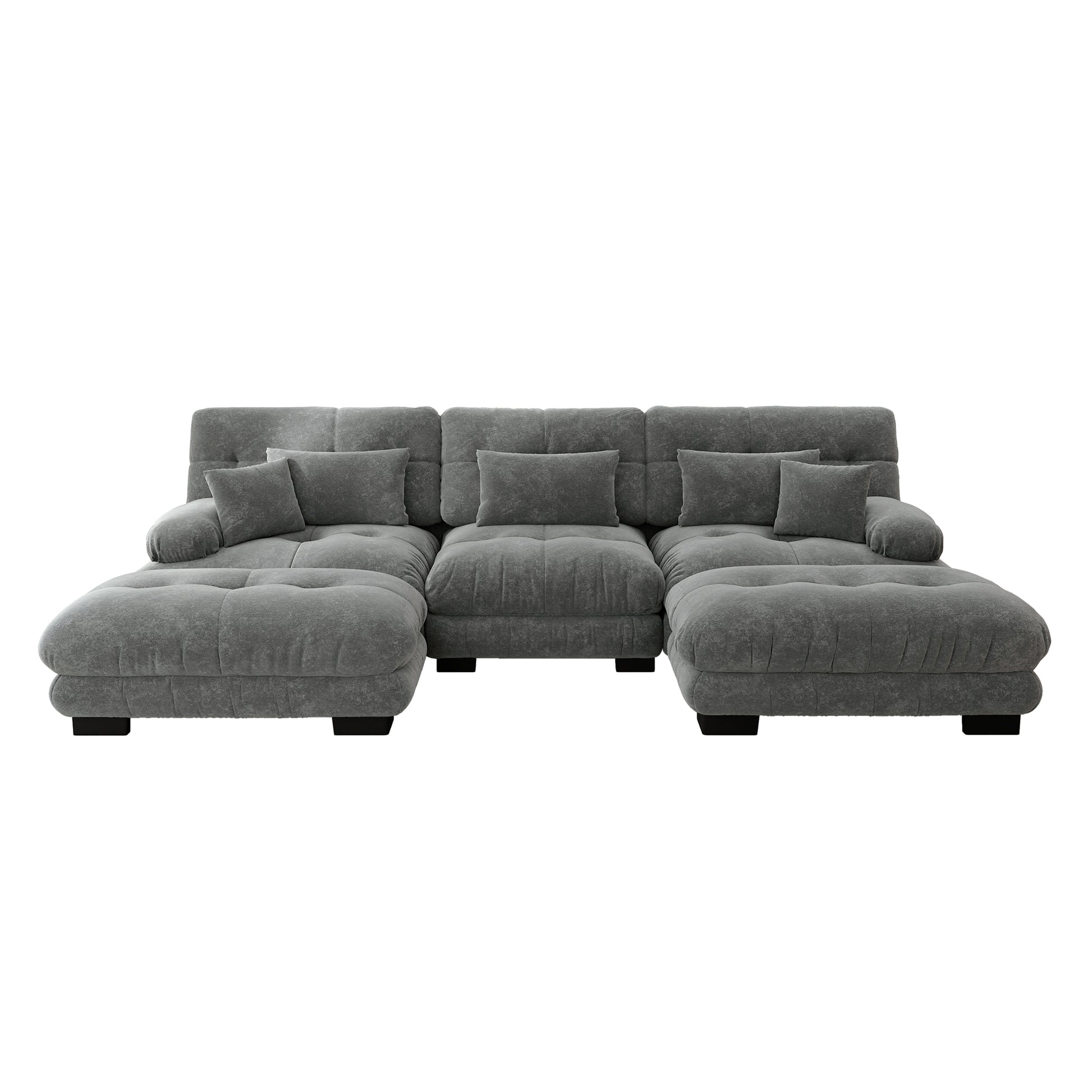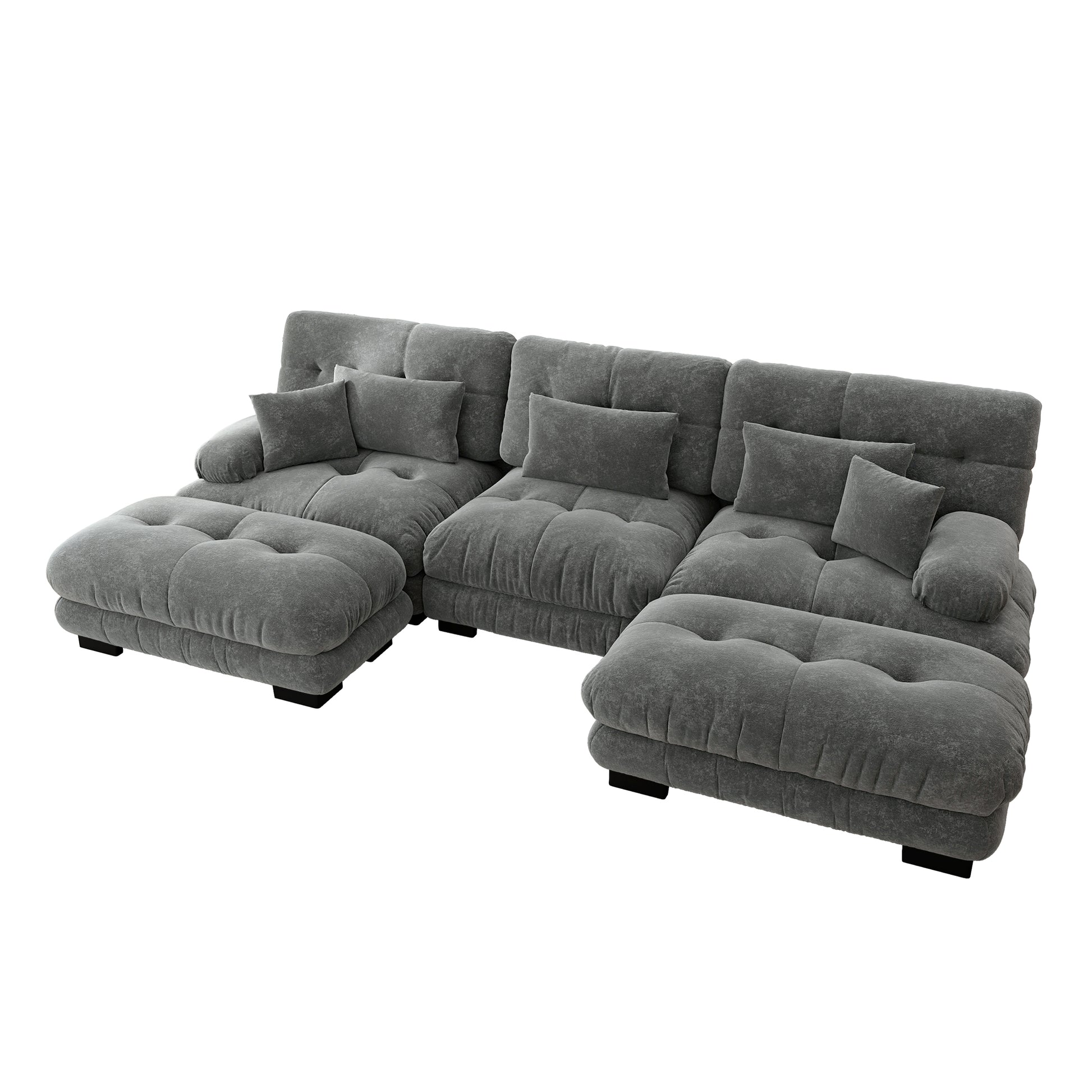Luxury Modular Corner Sofa, Oversized U-shaped Cloud with Ottoman, Chenille Grey