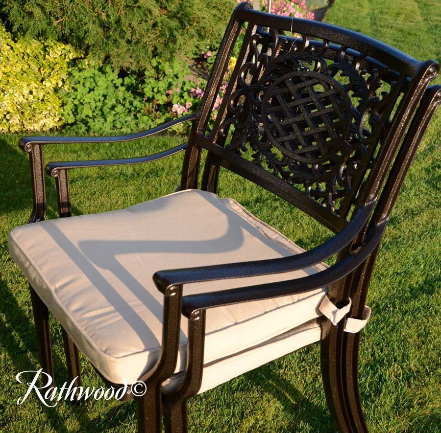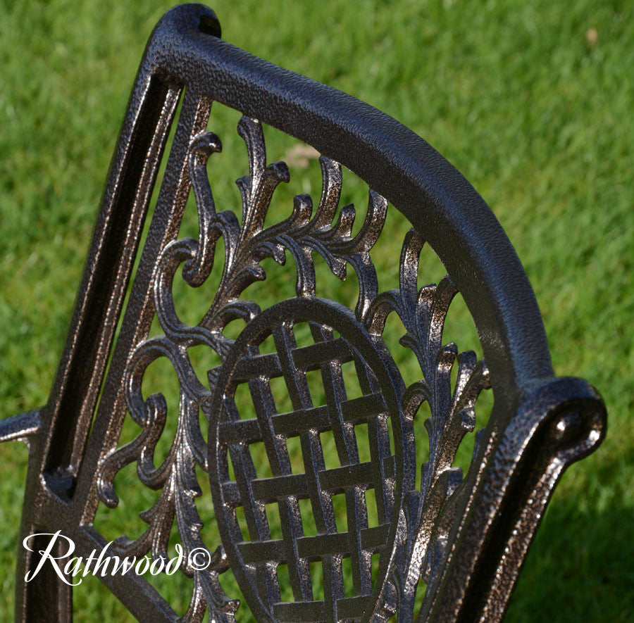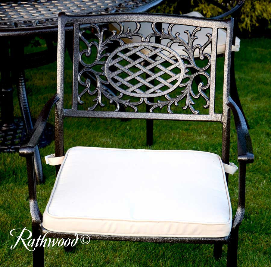 The Lyon Dark Chair & Pad is our best-selling cast aluminium seat because it’s durable, practical and stylish making it perfect for your outdoor area. It is made from cast aluminium with a highly attractive hammered bronze finish and is complete with cream seat cushions. It needs little or no maintenance and is completely rust-free! The chairs stack making them convenient for storage and the cushion covers are easy to maintain.