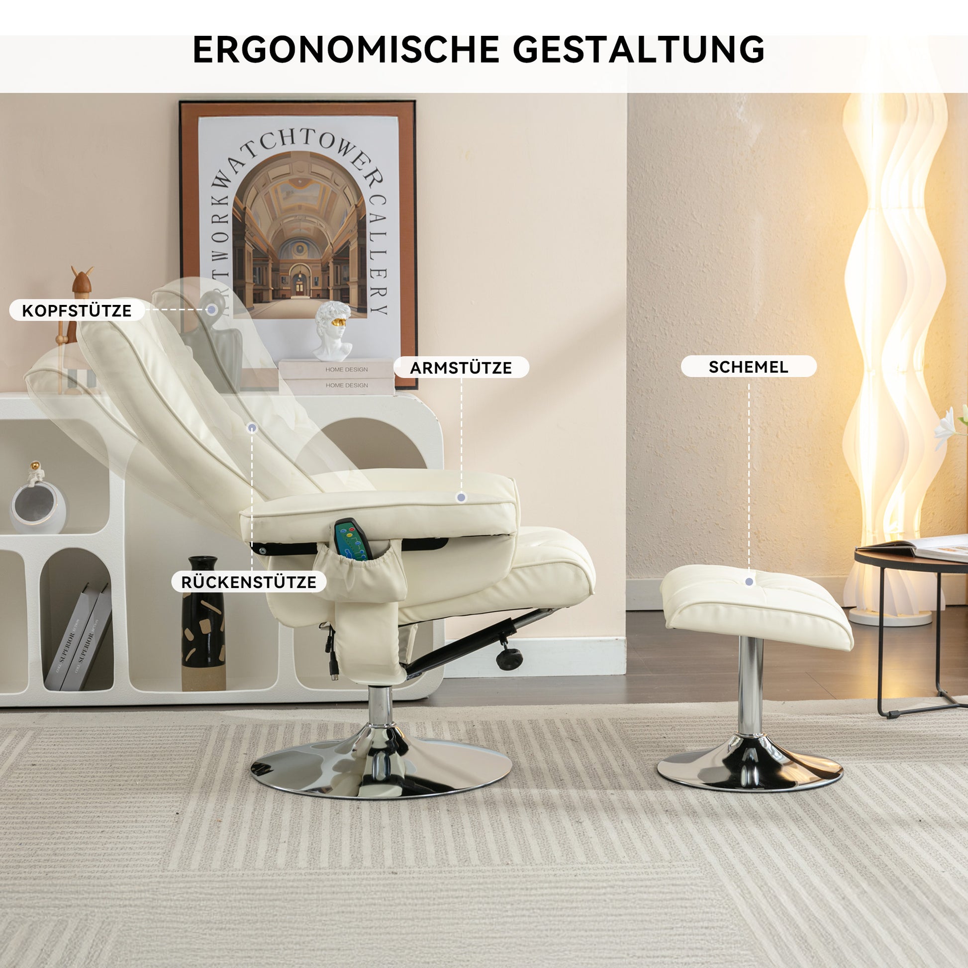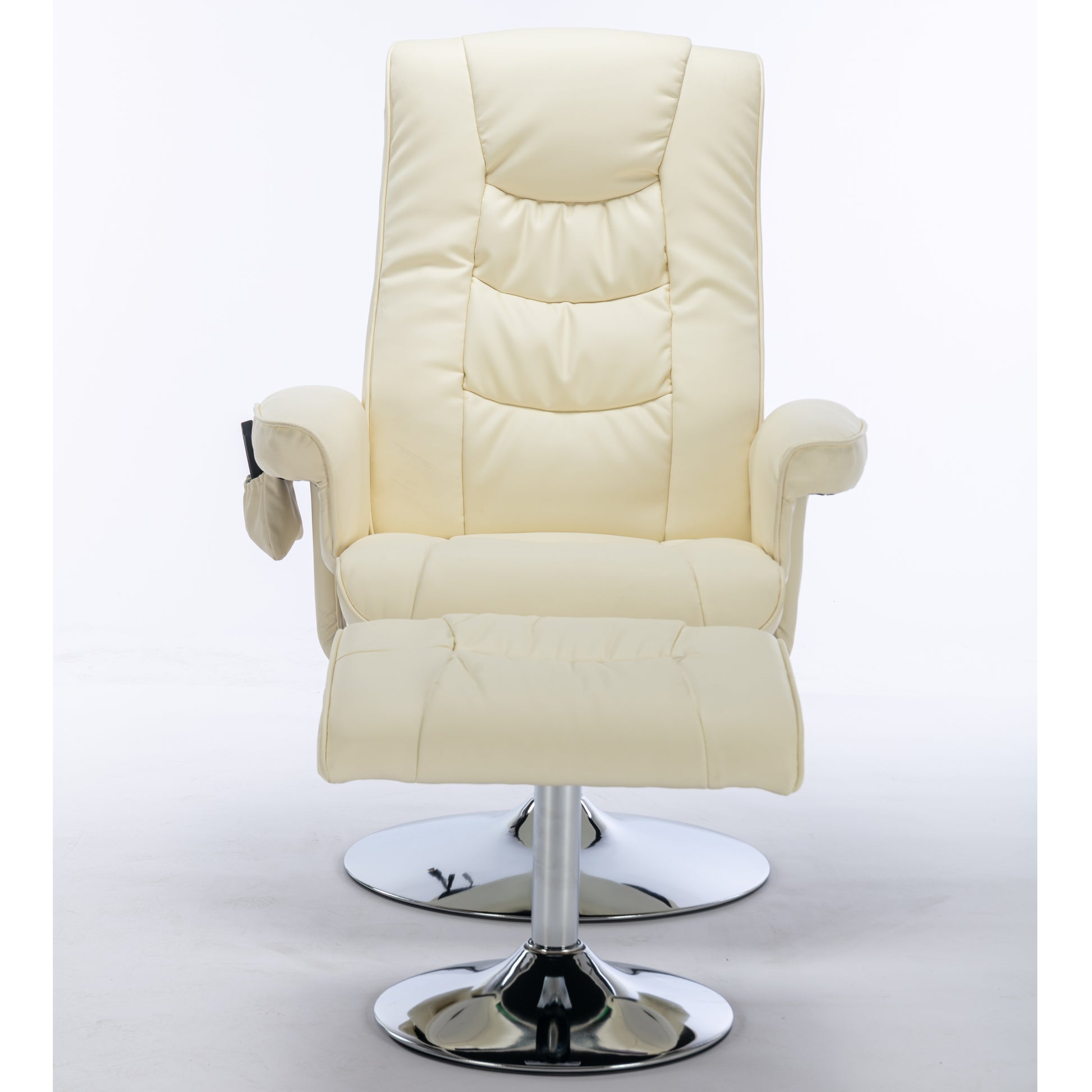Massage Chair with 5-Point Massager & Ottoman, PU Upholstery, Beige