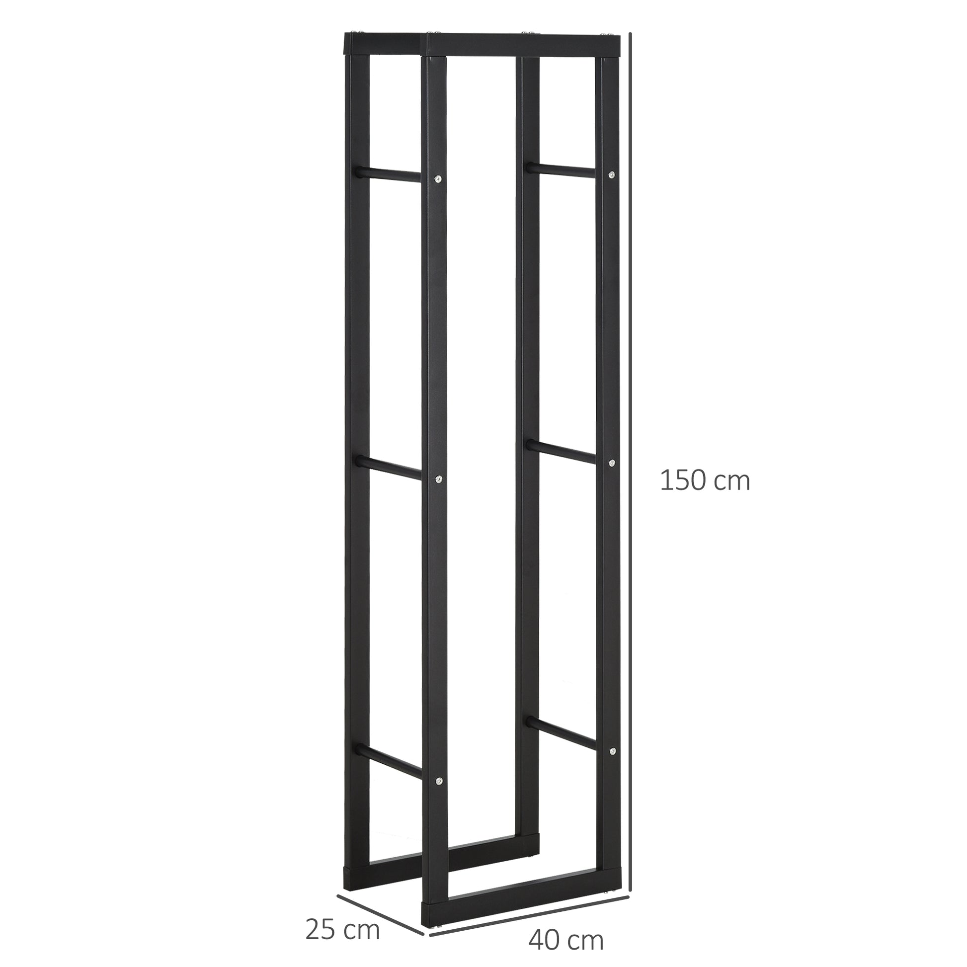Metal Firewood Log Holder, Tall Storage Rack Indoor Outdoor with Side Rails, Black