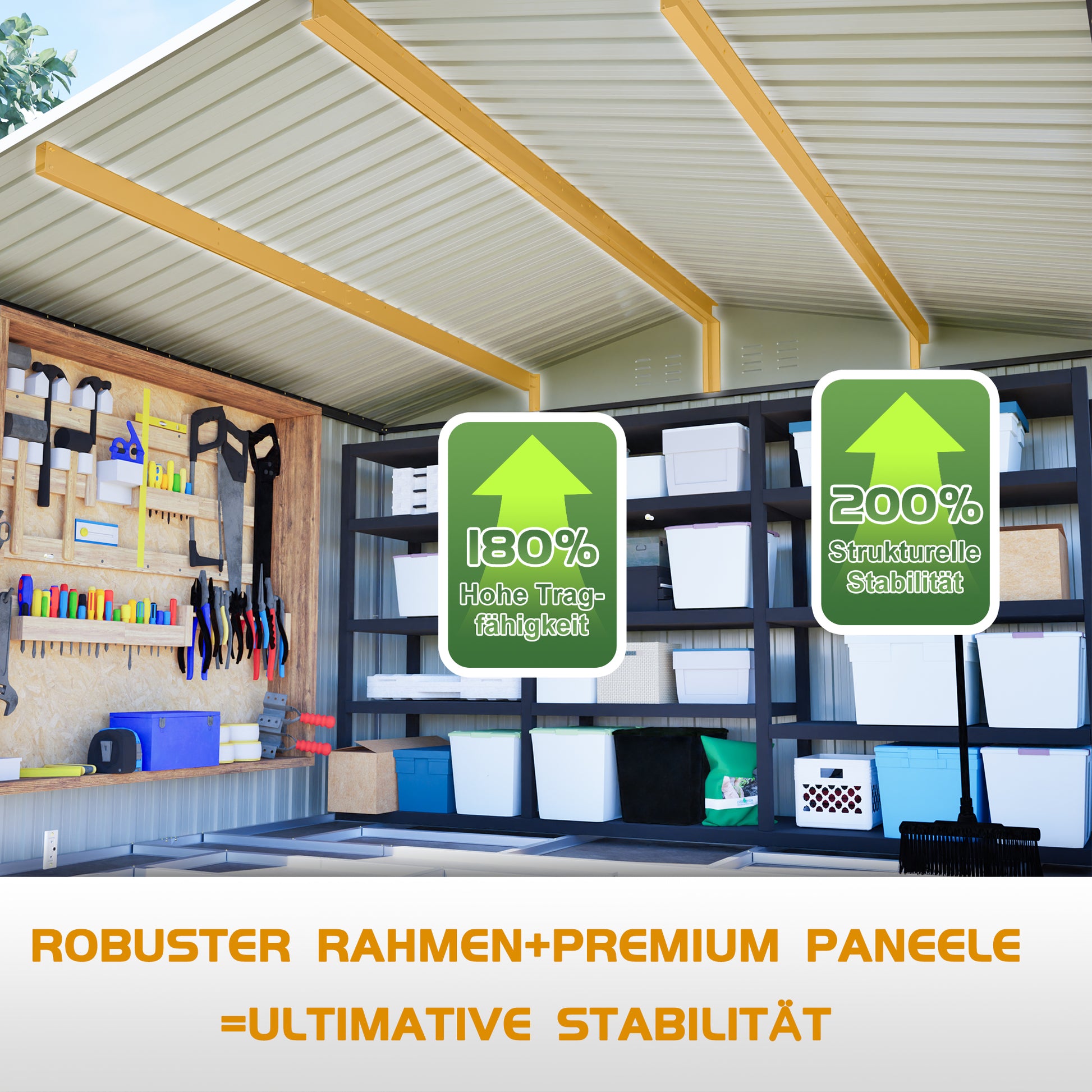 The package includes 1 metal garden shed and installation materials. It is delivered in 4 packages.