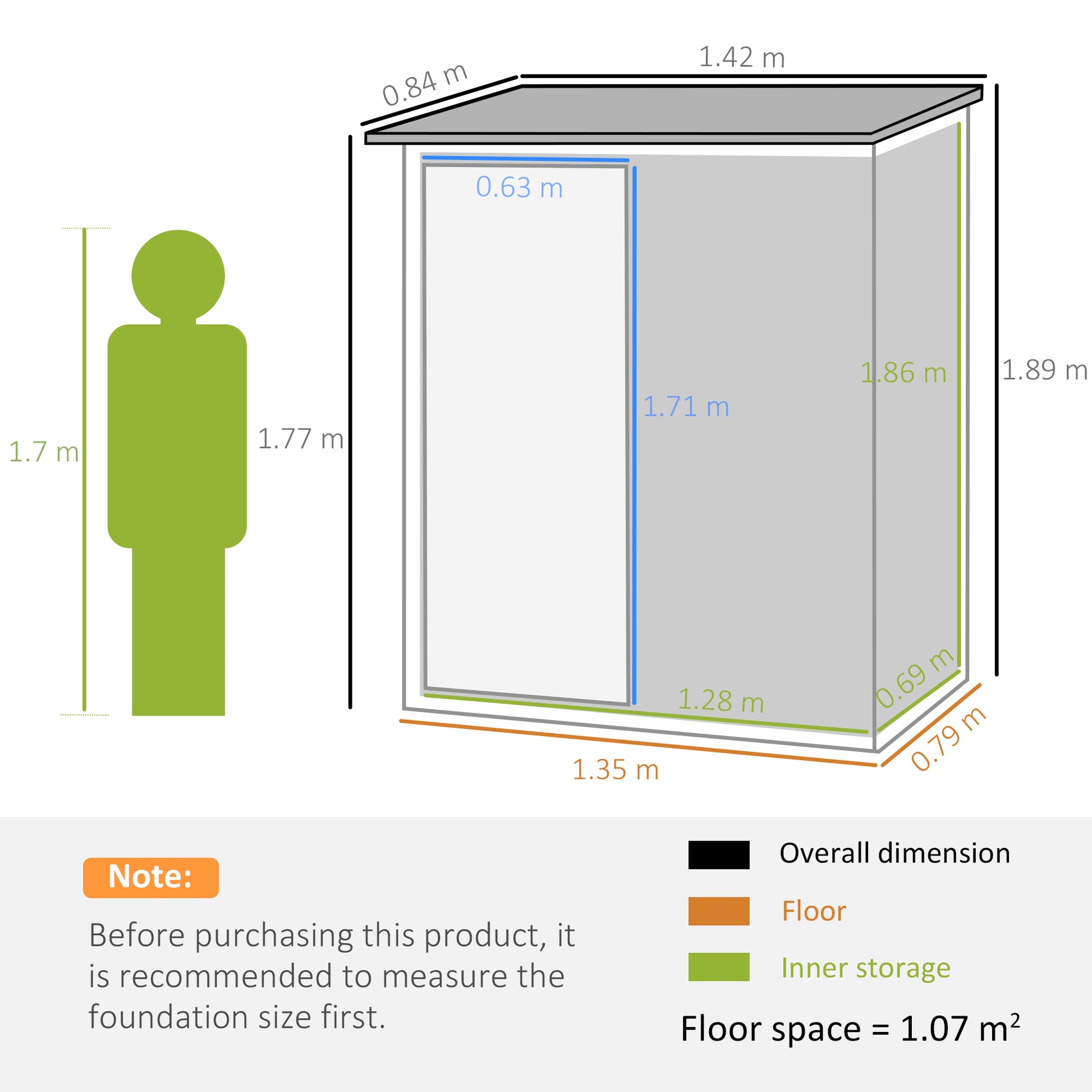 Metal Garden Storage Shed 5ft x 3ft, Sloped Roof & Lockable Door, Green