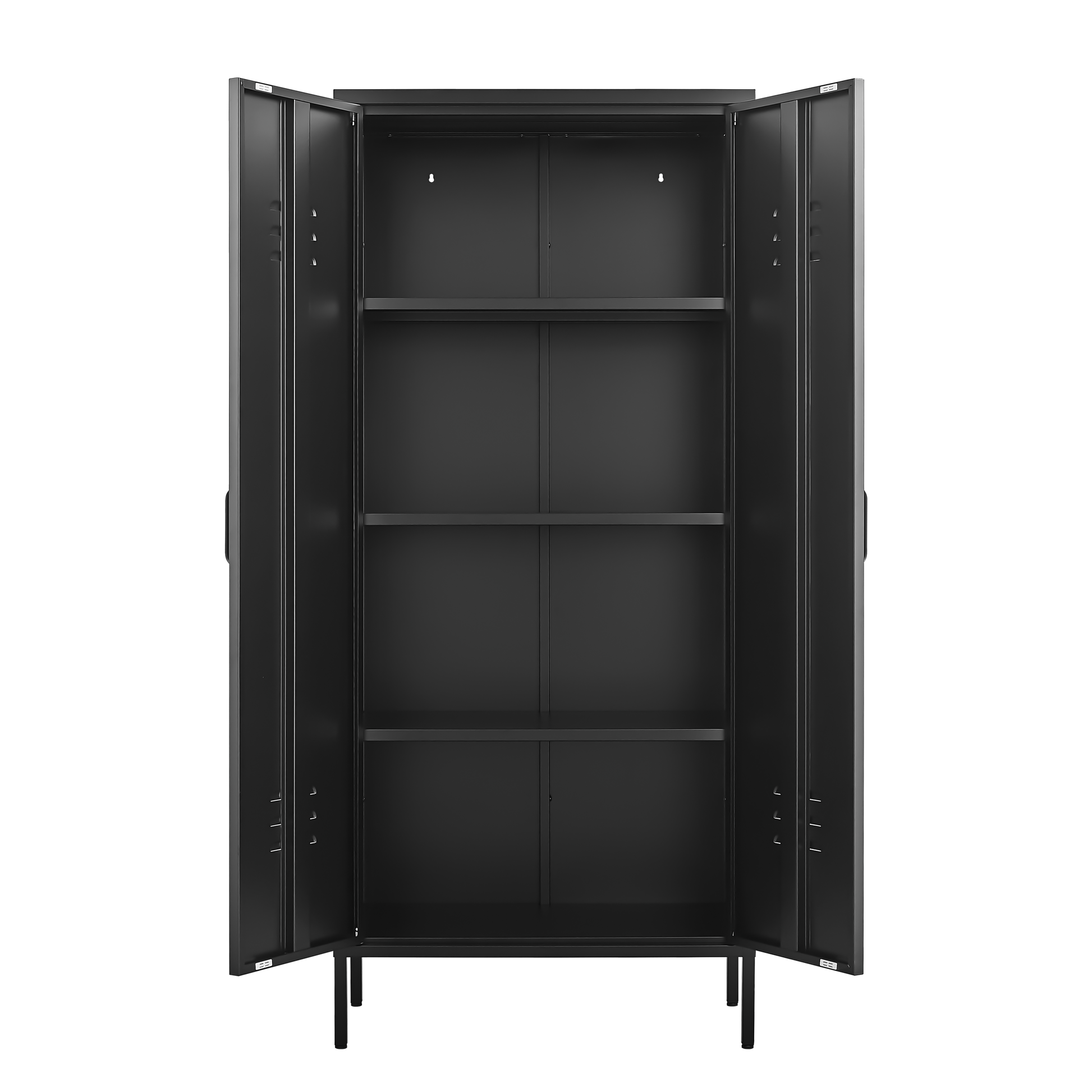 Metal Storage Cabinet with Doors and Adjustable Shelves, Black Metal