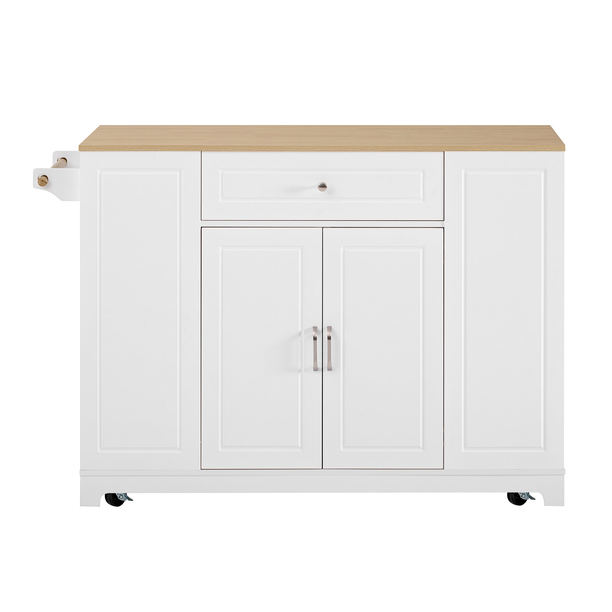 Mobile Kitchen Island Extendable Dining Storage Drawers Waste Bin - White
