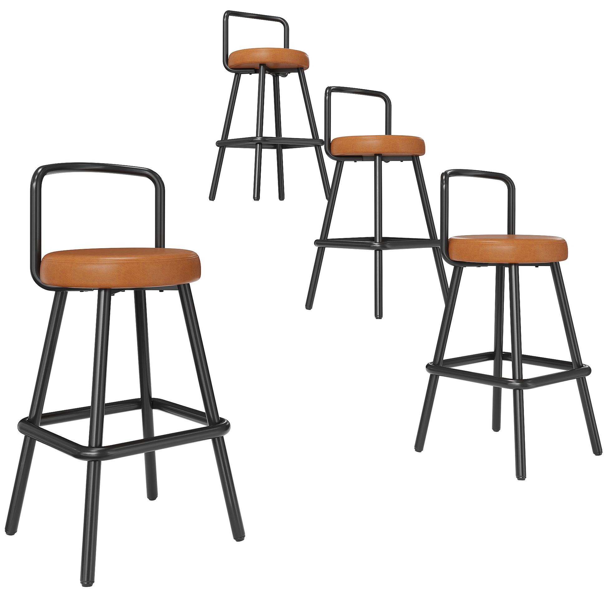 Modern Bar Stools Set of 4, Ergonomic Backrest with Footrest, PU Leather and Iron, Brown