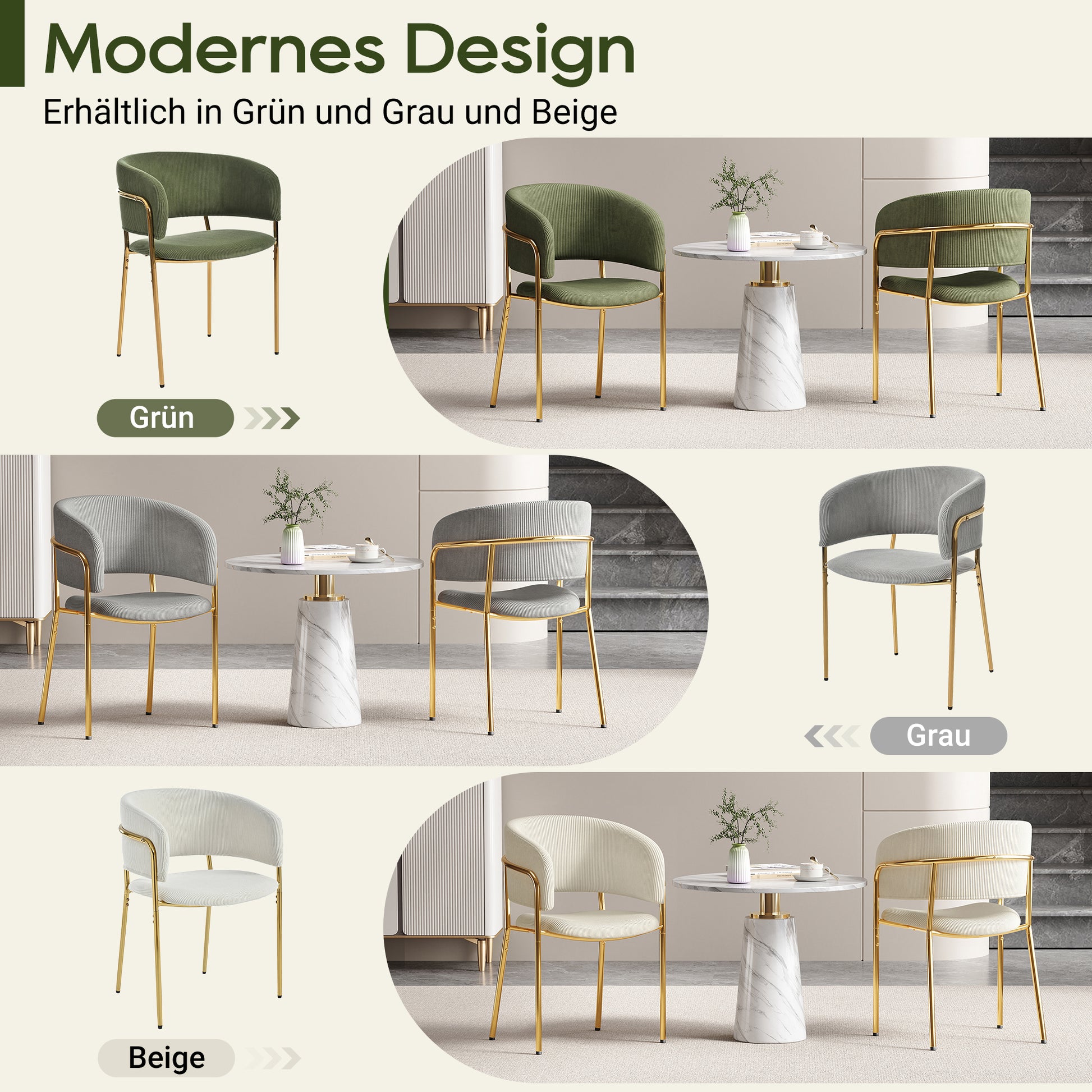 Modern Chairs with Angled Legs and Adjustable Feet, Green Corduroy Fabric (Set of 2)