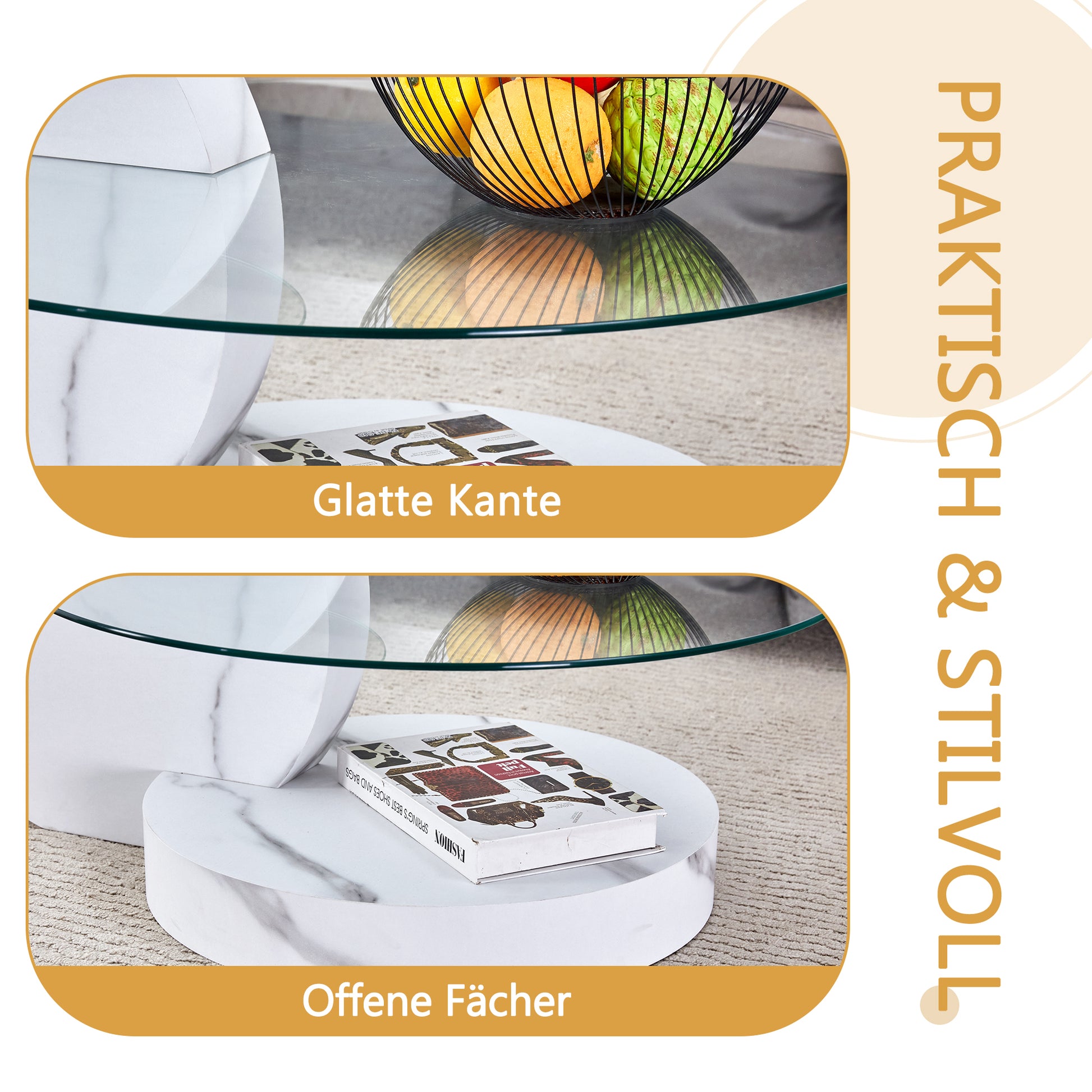 Stable load-bearing capacity and thoughtful safety details: The base design with non-slip feet ensures a secure, wobble-free stand. The edges of the glass top are precision-polished, rounded to the touch, and skin-friendly – ideal for homes with pets or children.