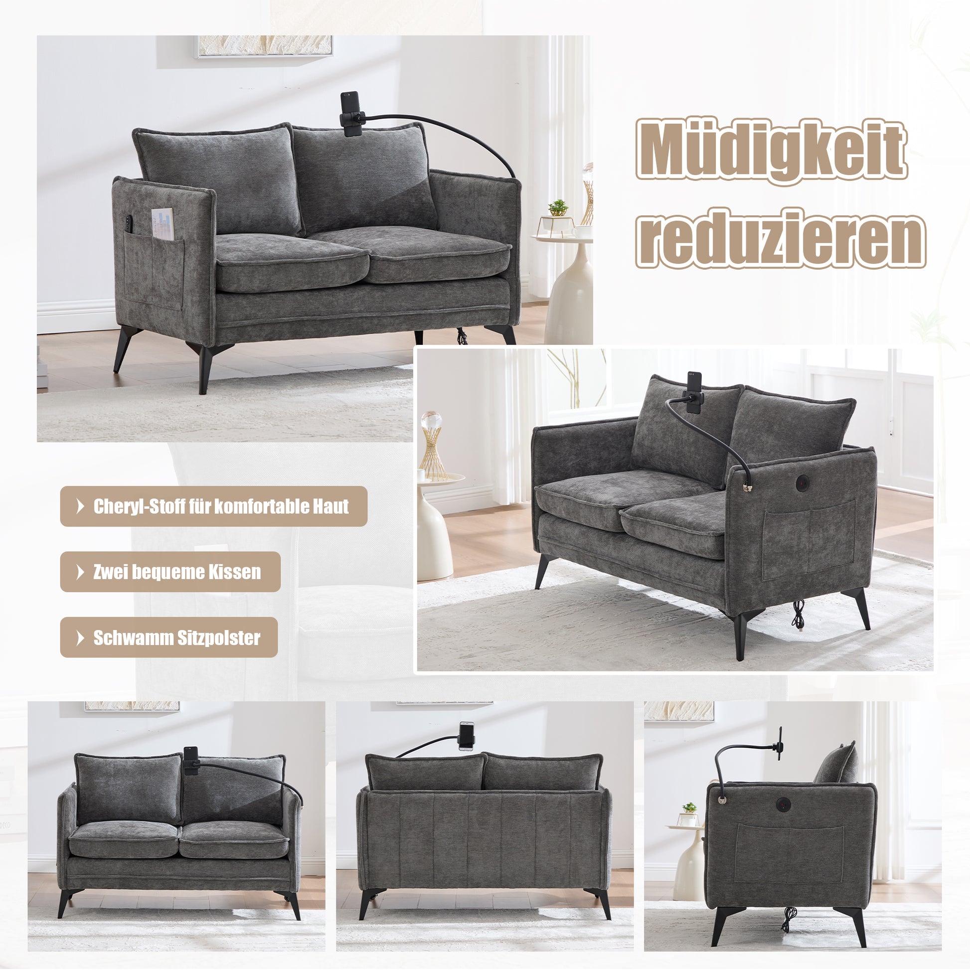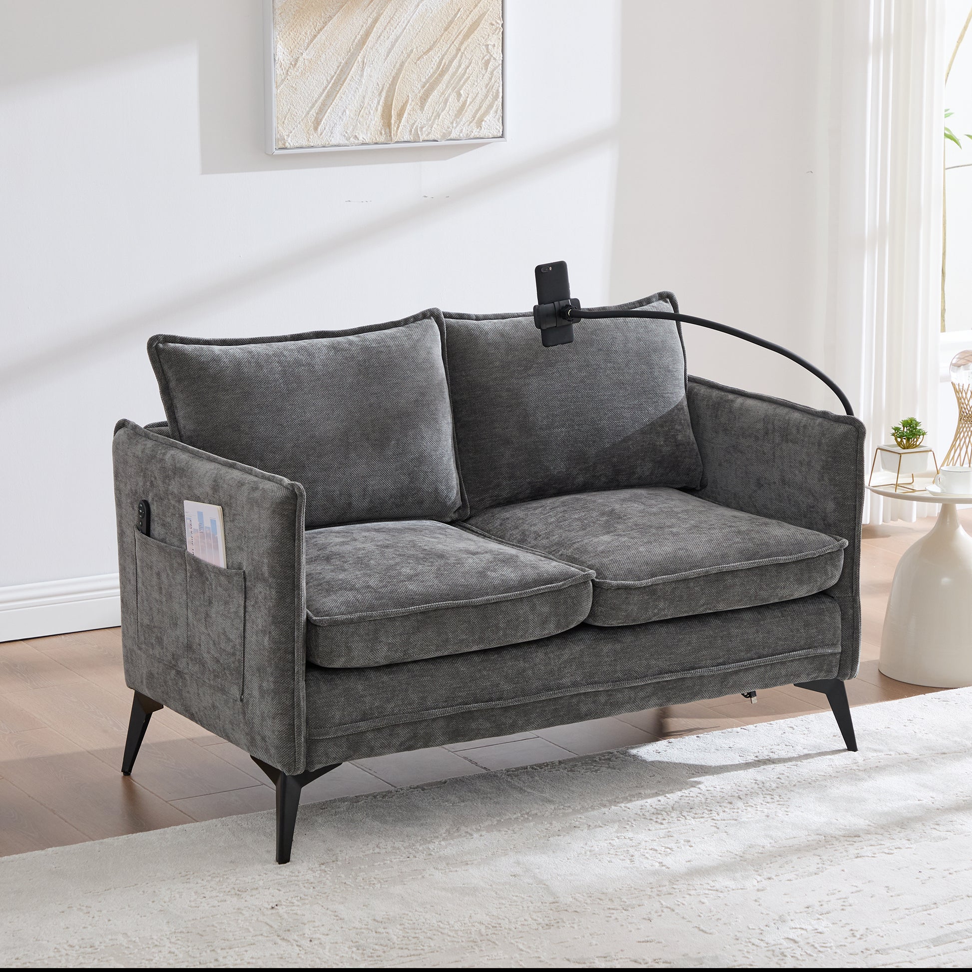 Modern Double Sofa, Small Fabric Armchair with Storage Side Pocket & Adjustable Phone Holder, Fabric