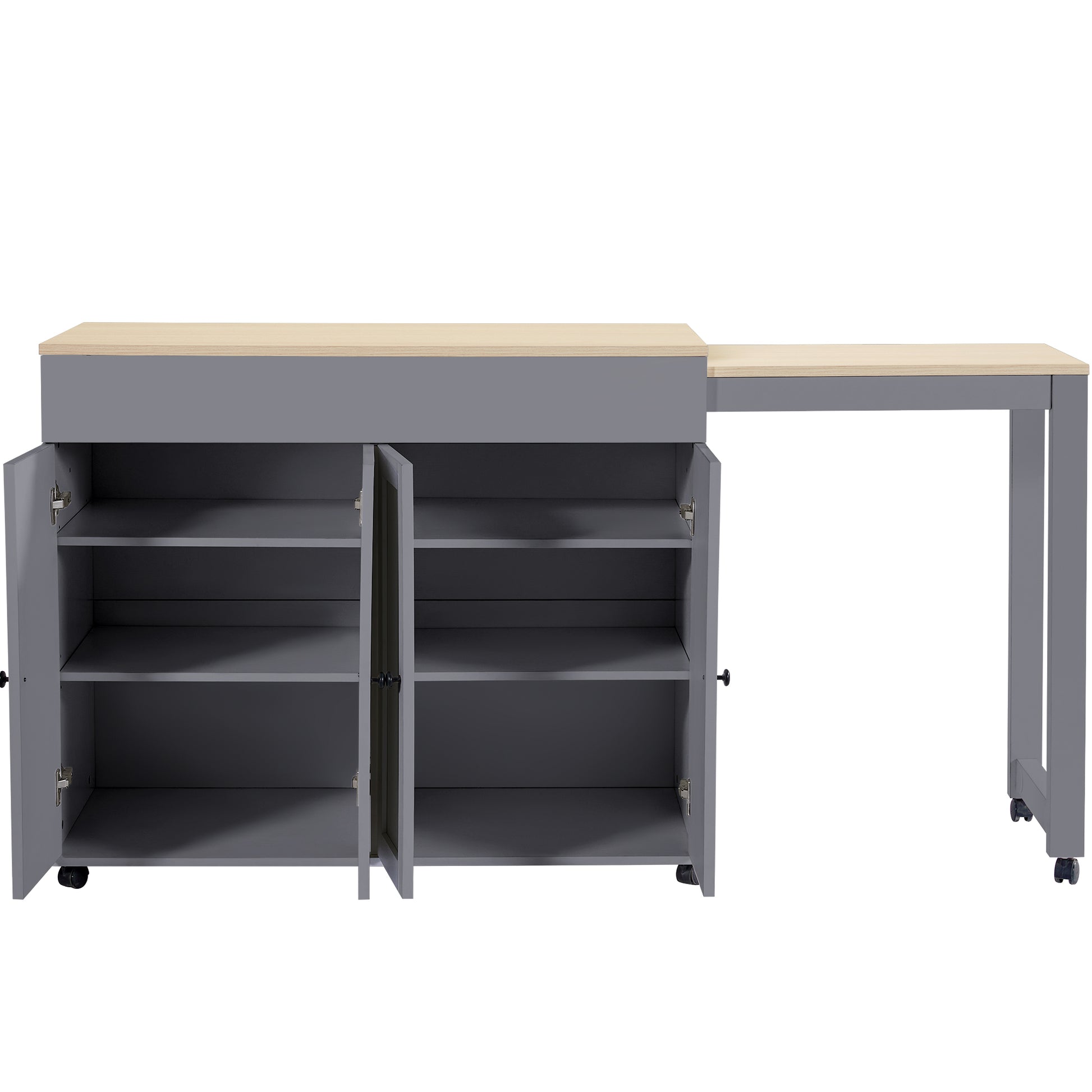 The table is equipped with structurally sound sliding rails and sturdy casters to ensure stability and smooth operation when adjusting the length. This design not only increases flexibility but also guarantees the table's stability and durability. Whether used as a dining table for the family, in the office, or as a bar, this table meets your diverse needs, offering efficient space utilization and comfortable use.