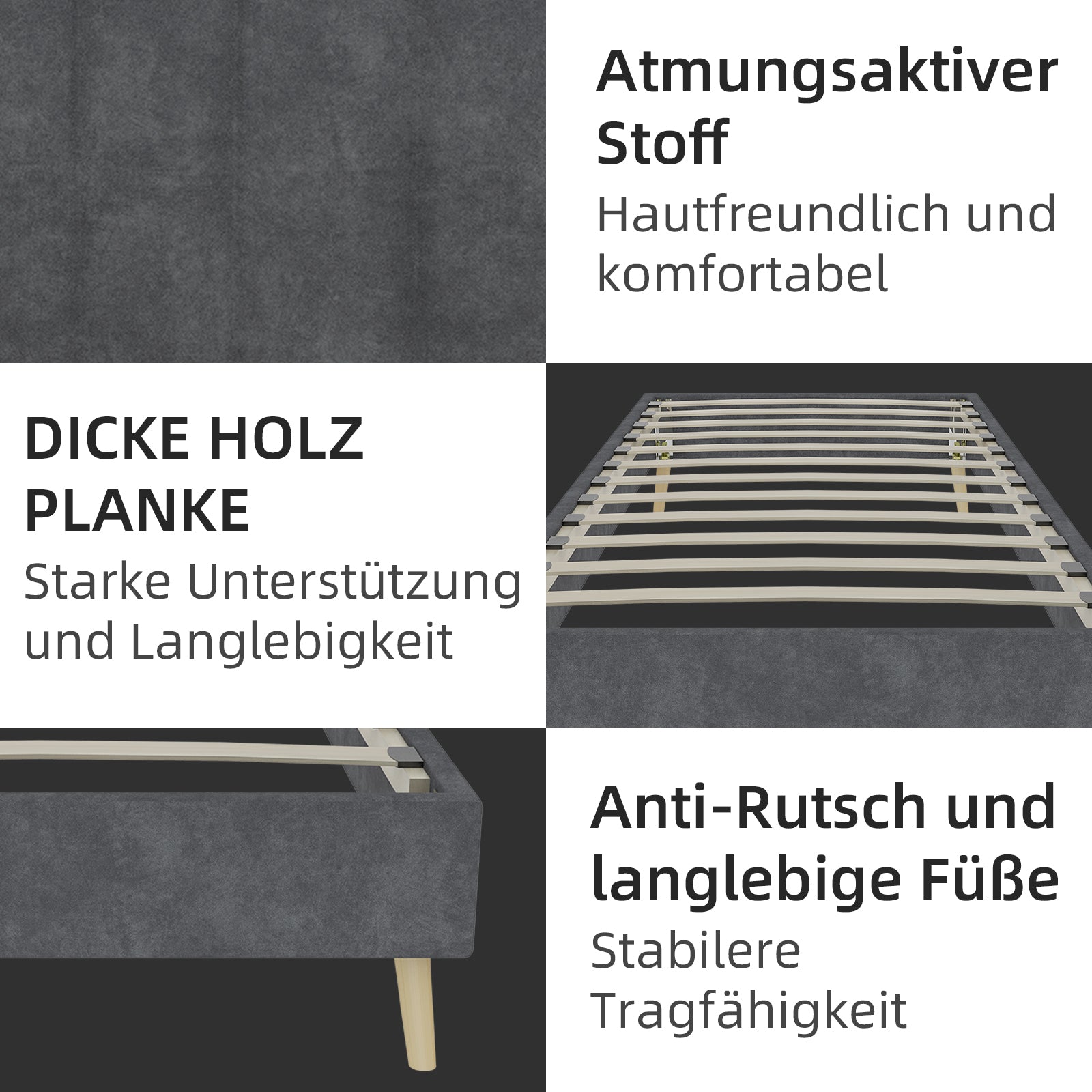 Modern Minimalist Bed Frame, Low-Profile Base 90x200 cm, Grey Dutch Velvet Fabric