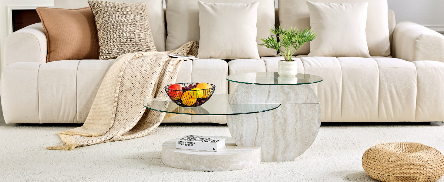 A dynamic choice for your interior design, this coffee table features an irregular, flowing texture that mimics natural stone. Combined with the transparent tempered glass top, it lends your living room a light and vibrant artistic flair. It is perfectly suited to various interior design styles, such as modern, minimalist, or subtly luxurious.