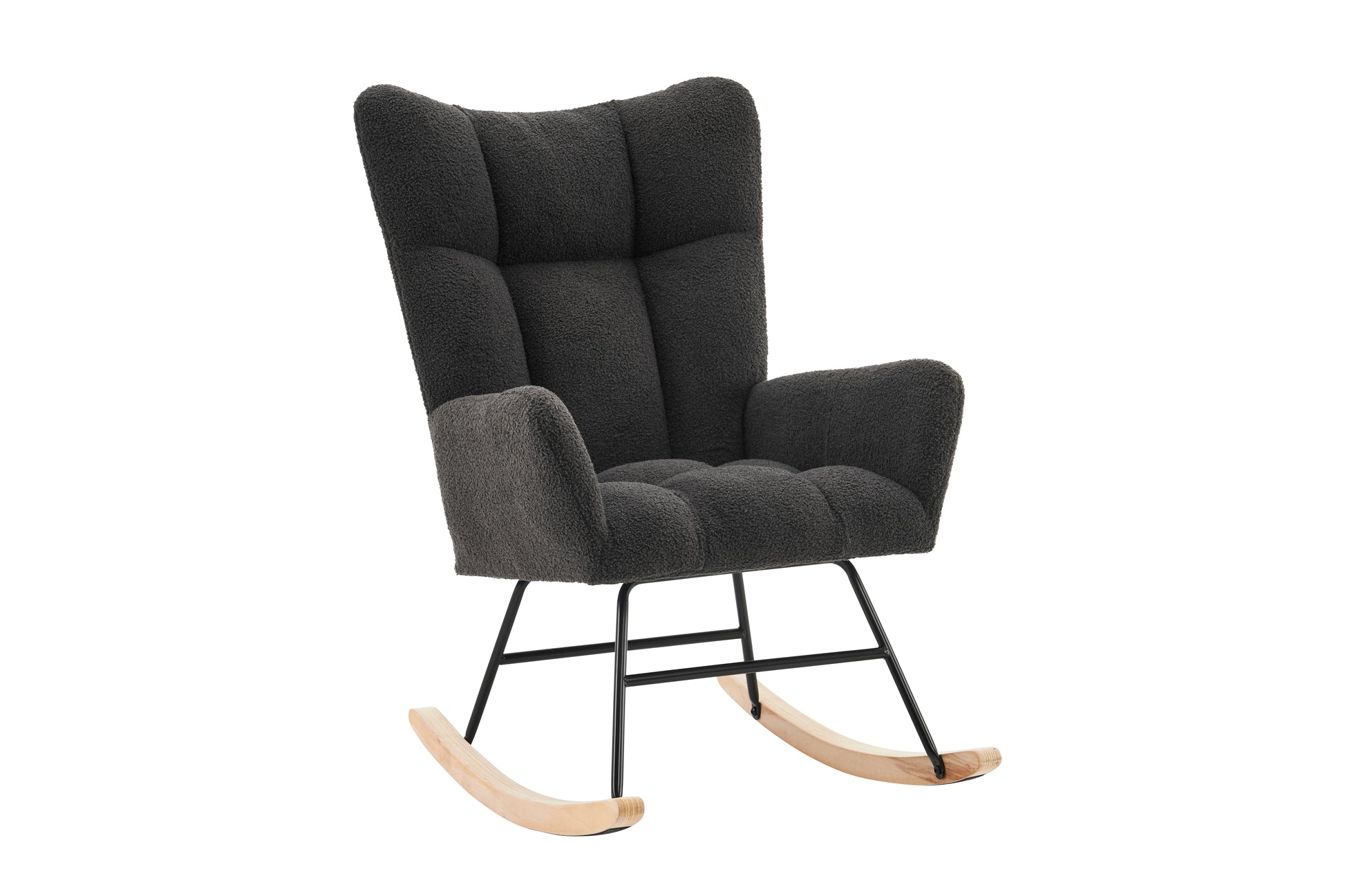 Modern Rocking Chair, High Backrest Armrests, Grey