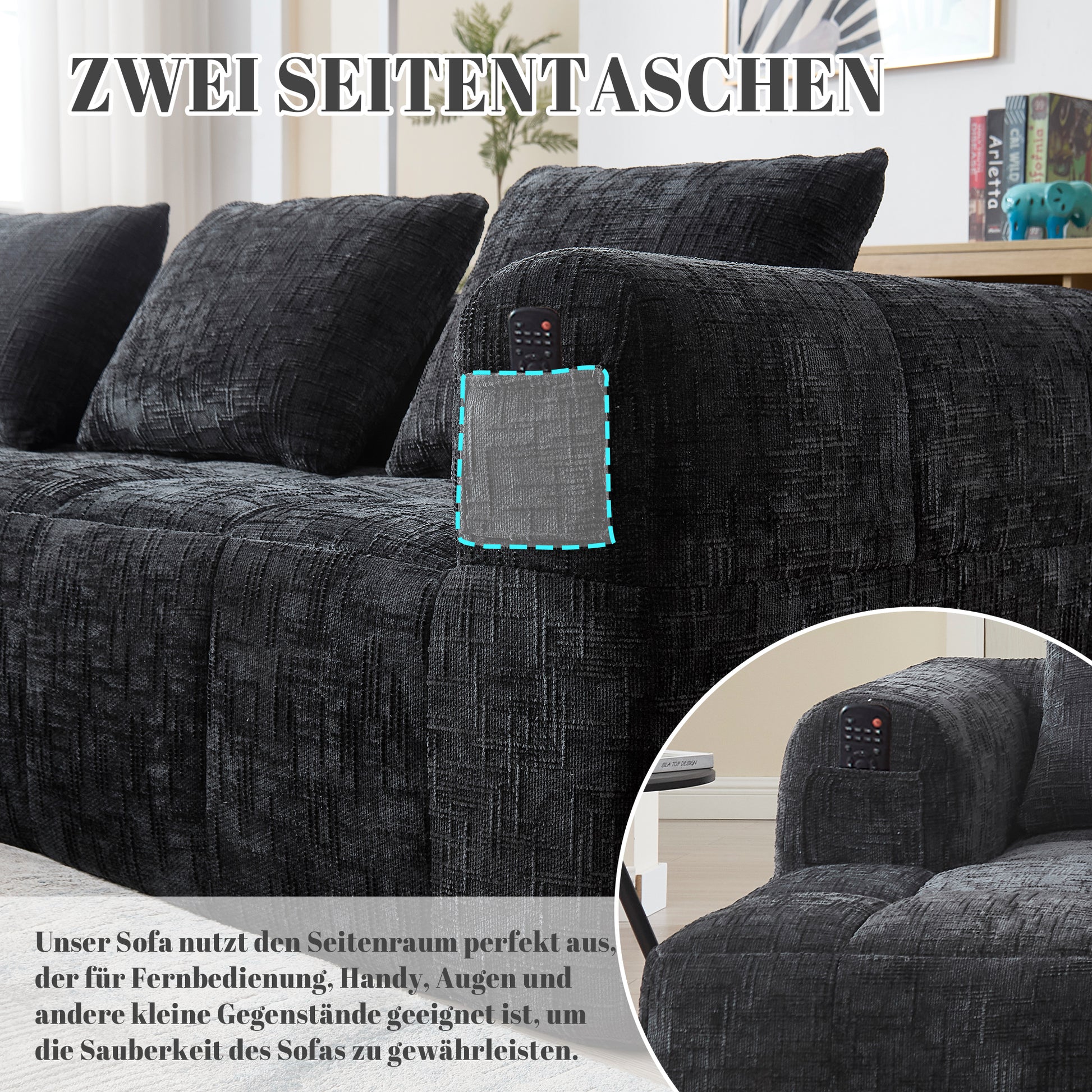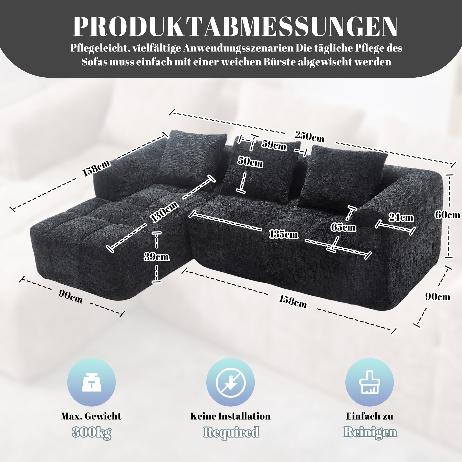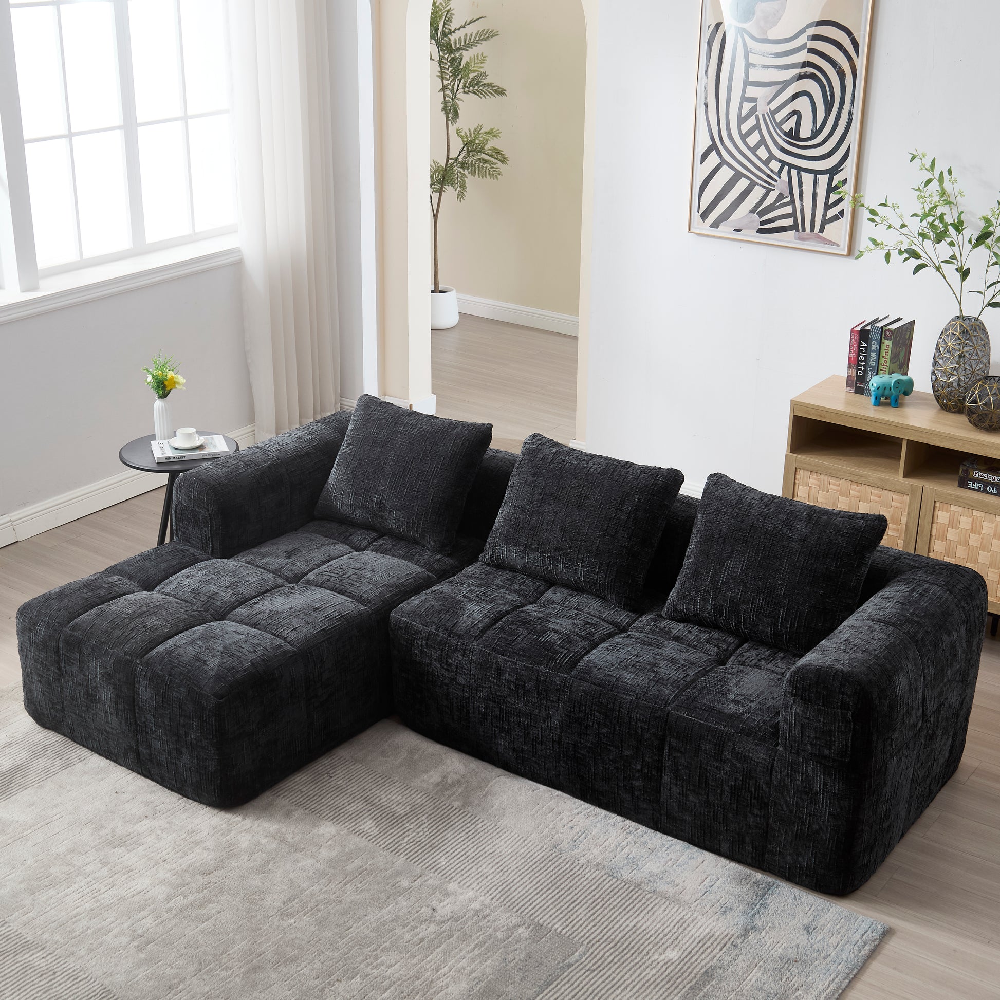 Modern Sectional Sofa L-Shaped 3-Seater Chaise Lounge, Chenille Black