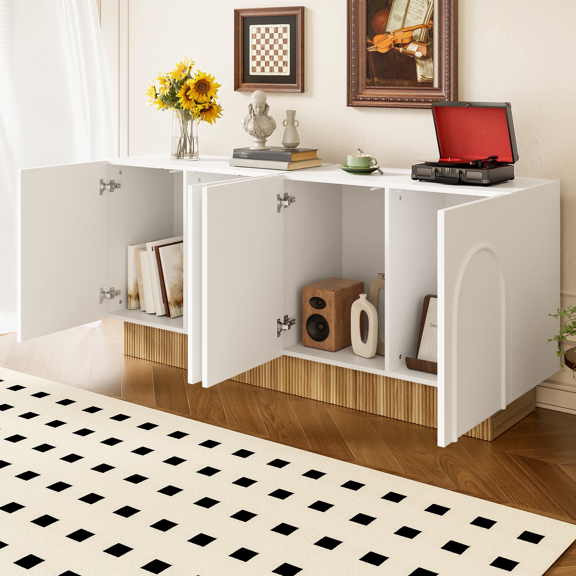 Modern Sideboard Cabinet | 4-Door Ample Storage U-Shaped | 160×75×38cm